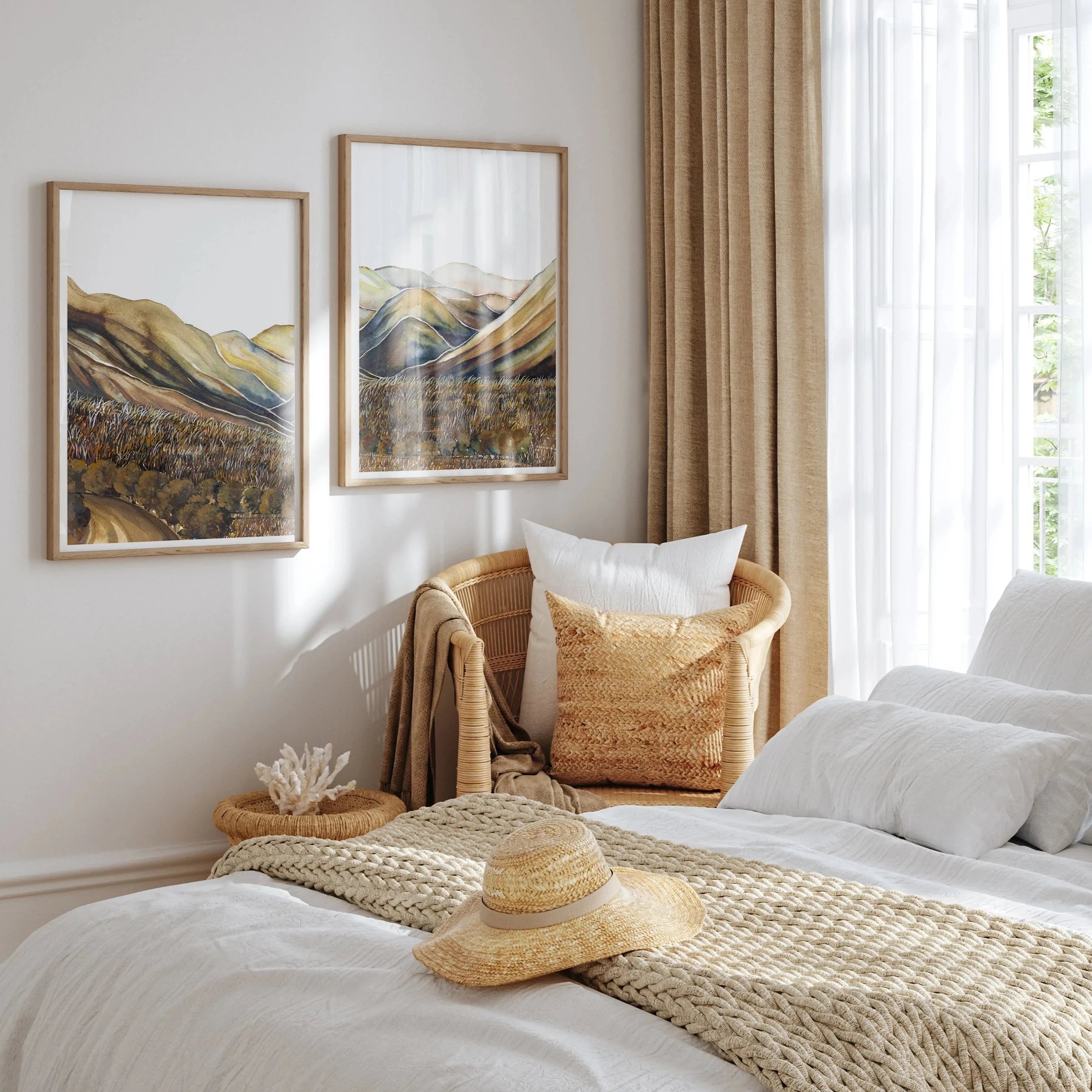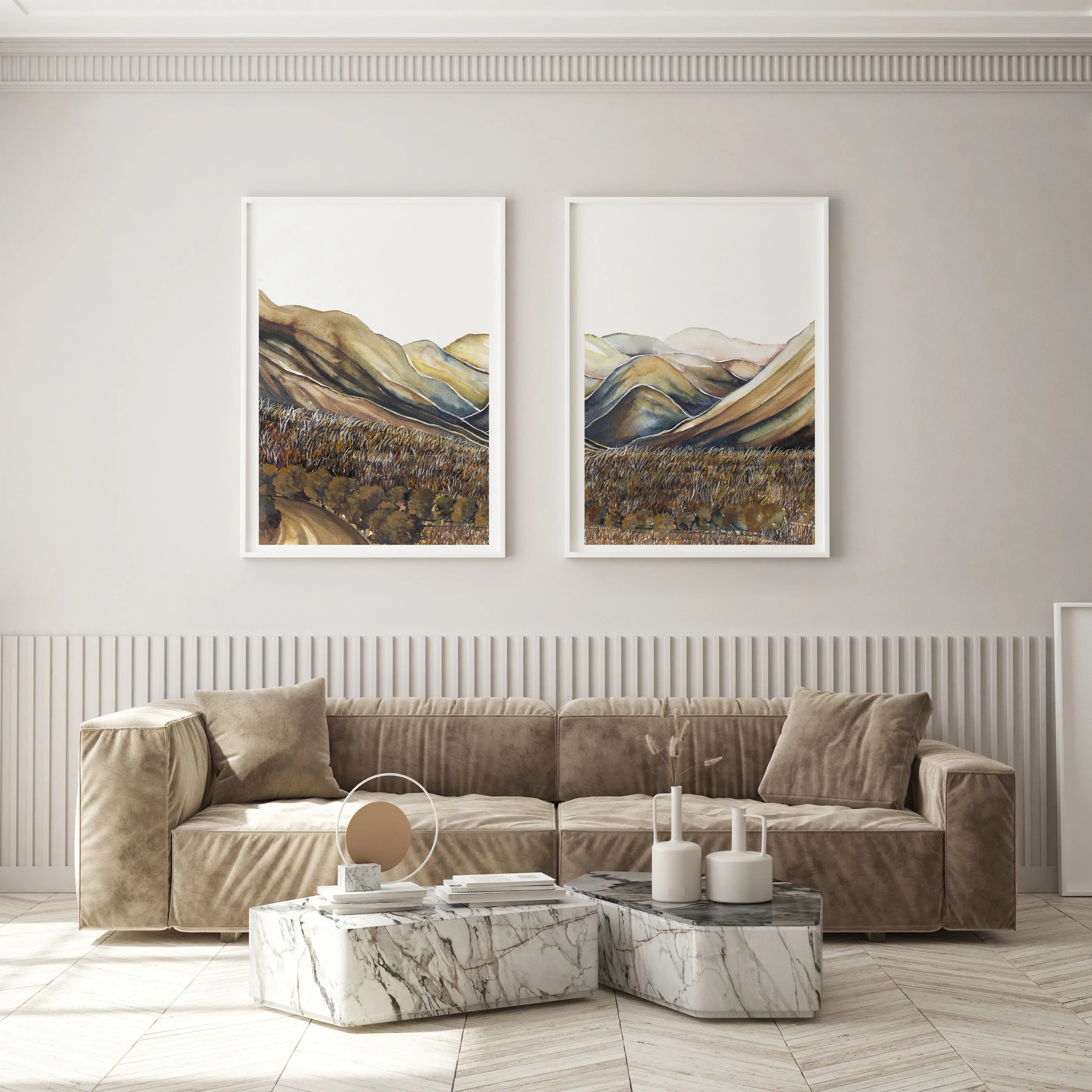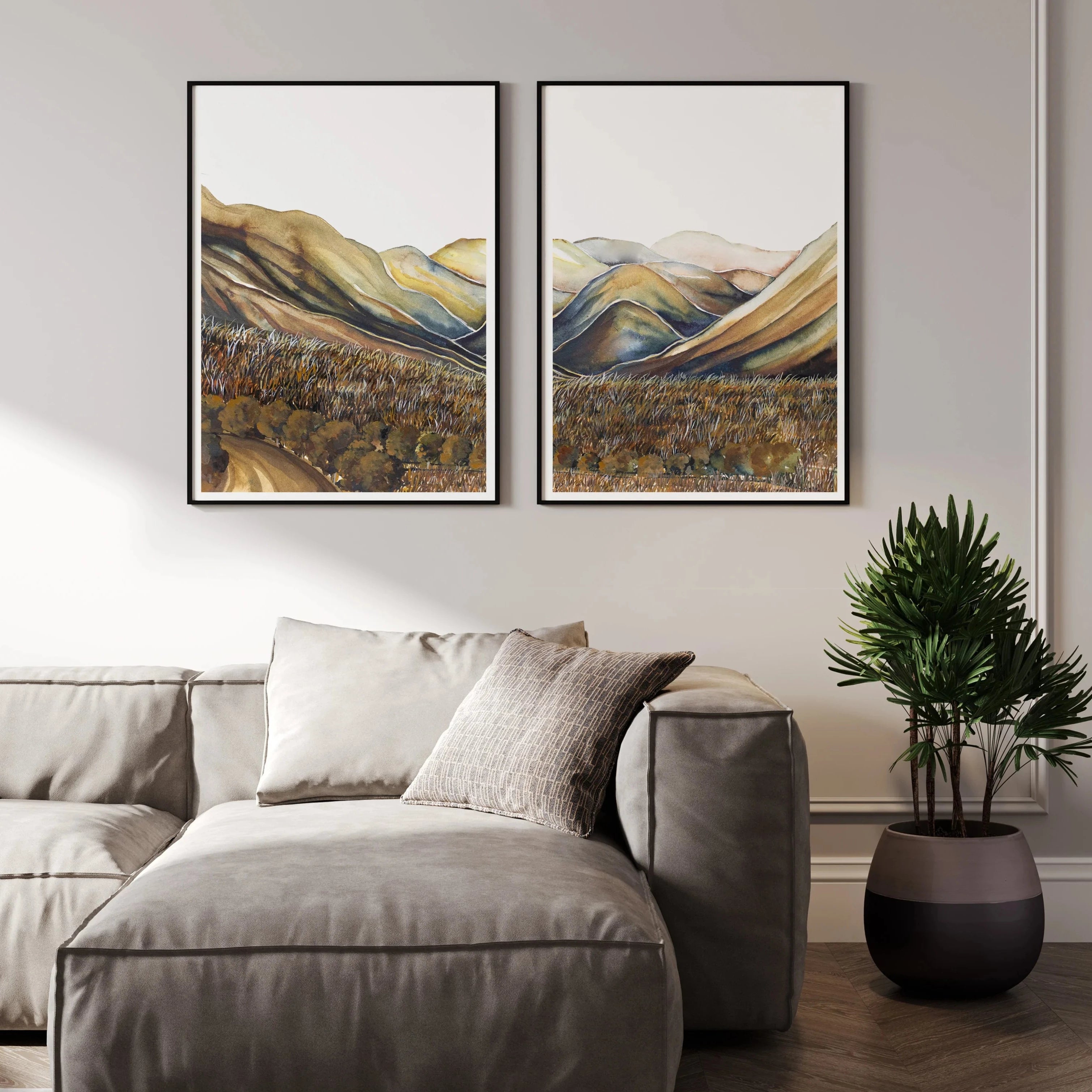 Part of our summer sub-range released in limited numbers for our Exclusive Edition.Our Ahuriri Valley Pair is an ode to some of our most incredible mountains and landscapes. Gentle palettes and soft defining shapes, captured through watercolour.. This pair includes: Ahuriri Valley I, Ahuriri Valley II. Uniquely designed by Leden, this piece is crafted to create the perfect backdrop for a range of interiors.