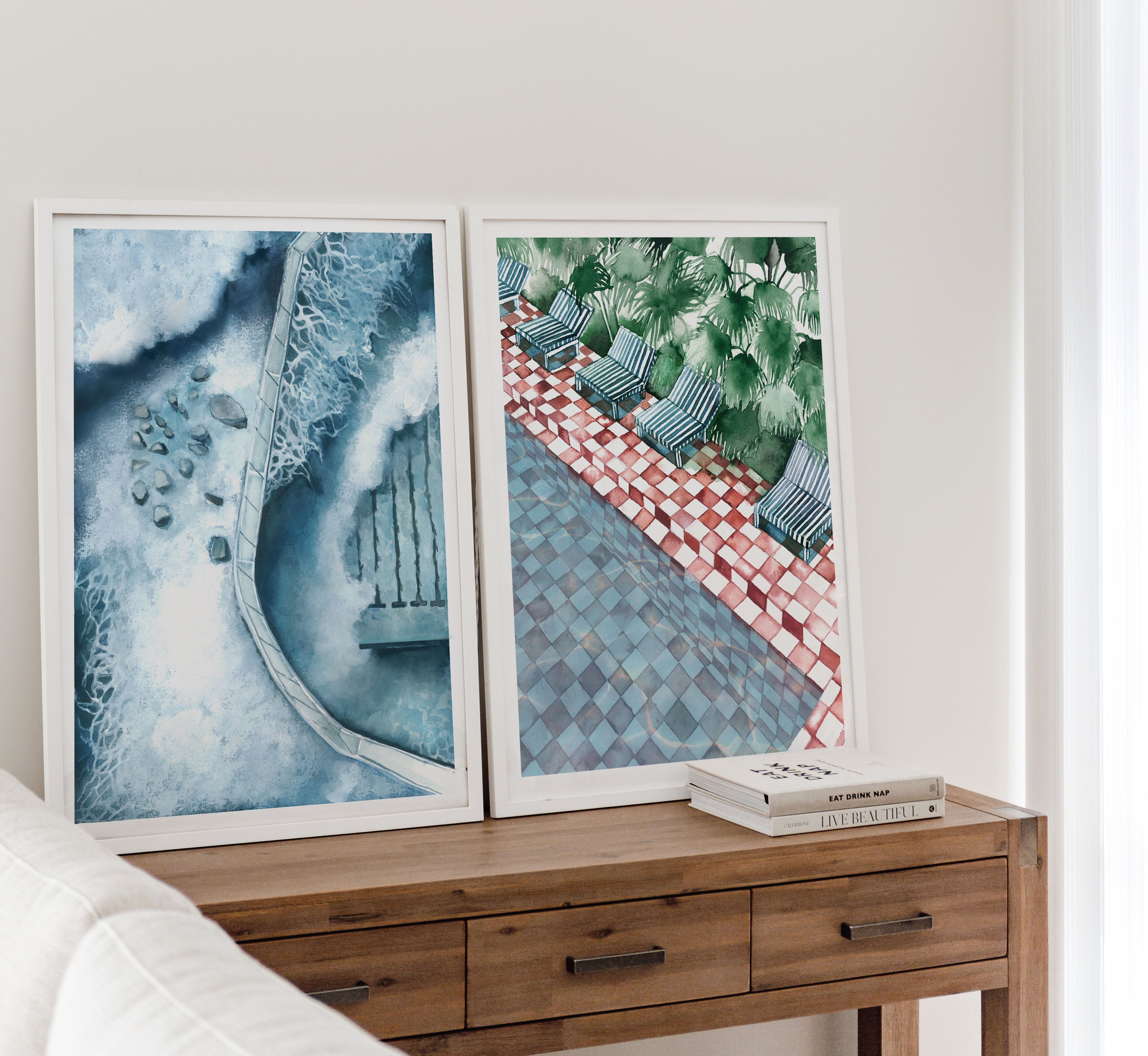 Part of our Bondi-inspired series, our Bondi Pair is a collection of our charming coastal-themed artworks. This Pair includes: Poolside, Bondi Uniquely designed by Leden to bring the seaside to your interior.