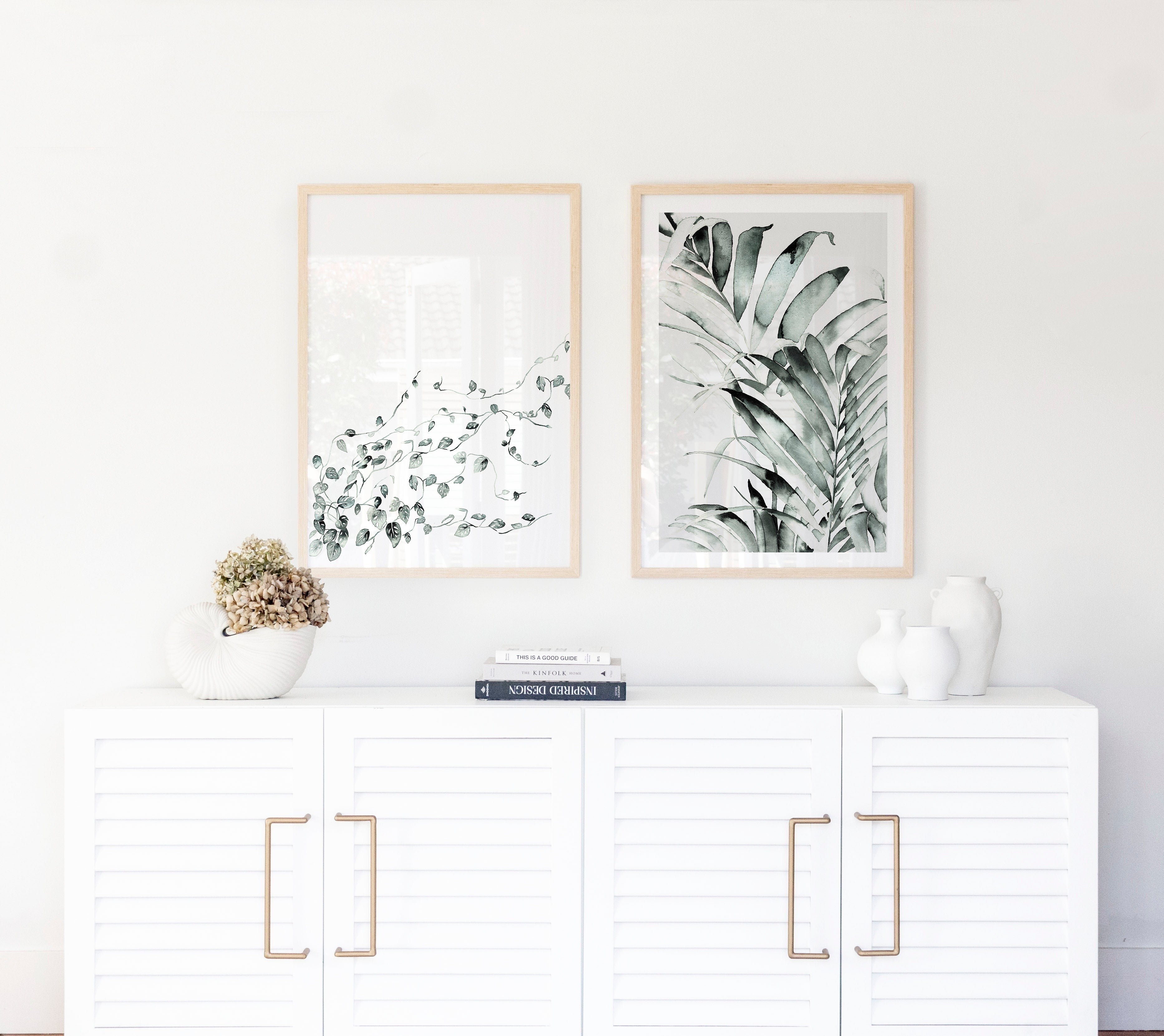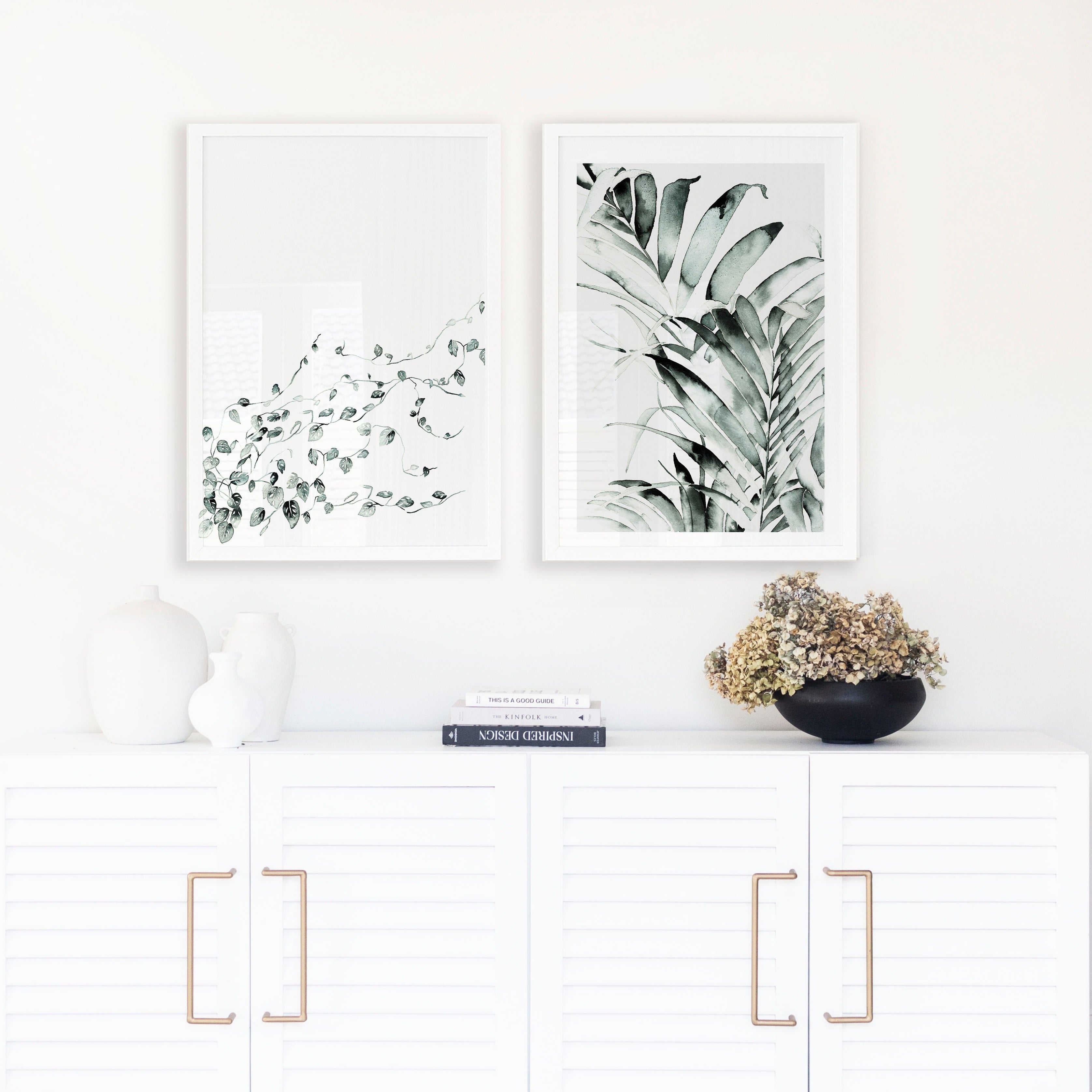 Our beautiful botanical sets are ideal for blending a touch of greenery, bringing a sense of calm to your interior space. Our Calm Pair is a set of botanic artworks. This pair includes: Cross Over Palms, Falling Hearts Uniquely designed by Leden., crafted to elevate any interior space
