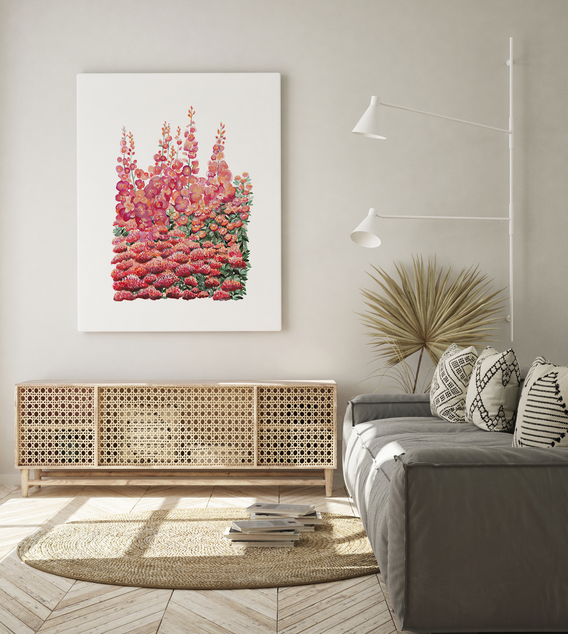 Eden Garden I is one of our vibrant floral pieces, infused with pops of colour, to brighten up your walls. Uniquely designed by Leden.
