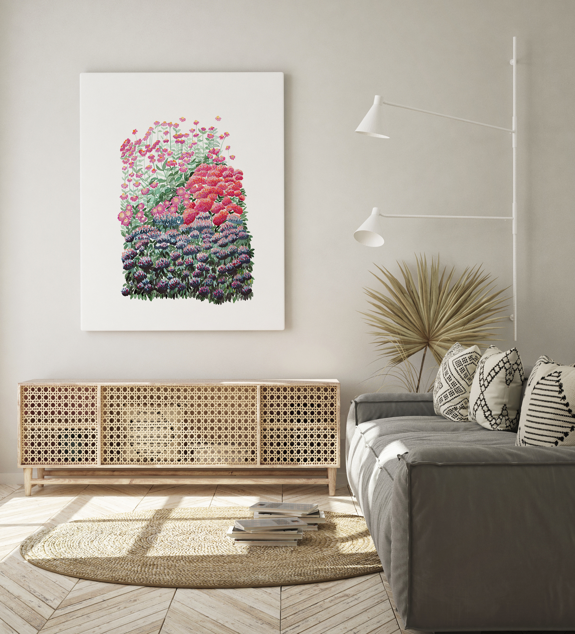 Eden Garden II is one of our vibrant floral pieces, infused with pops of colour, to brighten up your walls. Uniquely designed by Leden.