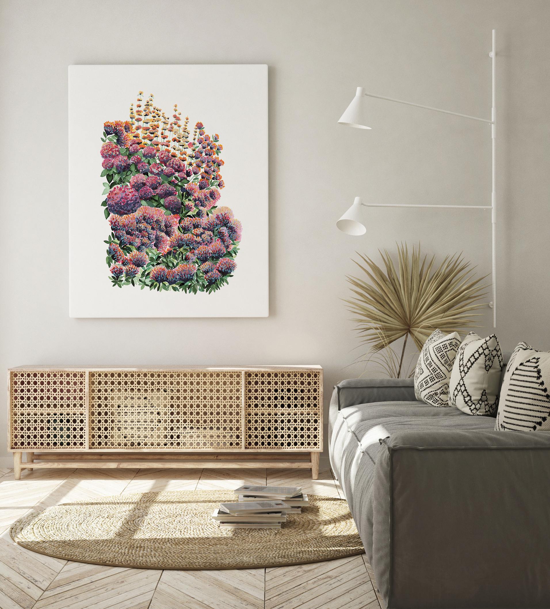 Eden Garden III is one of our vibrant floral pieces, infused with pops of colour, to brighten up your walls. Uniquely designed by Leden.