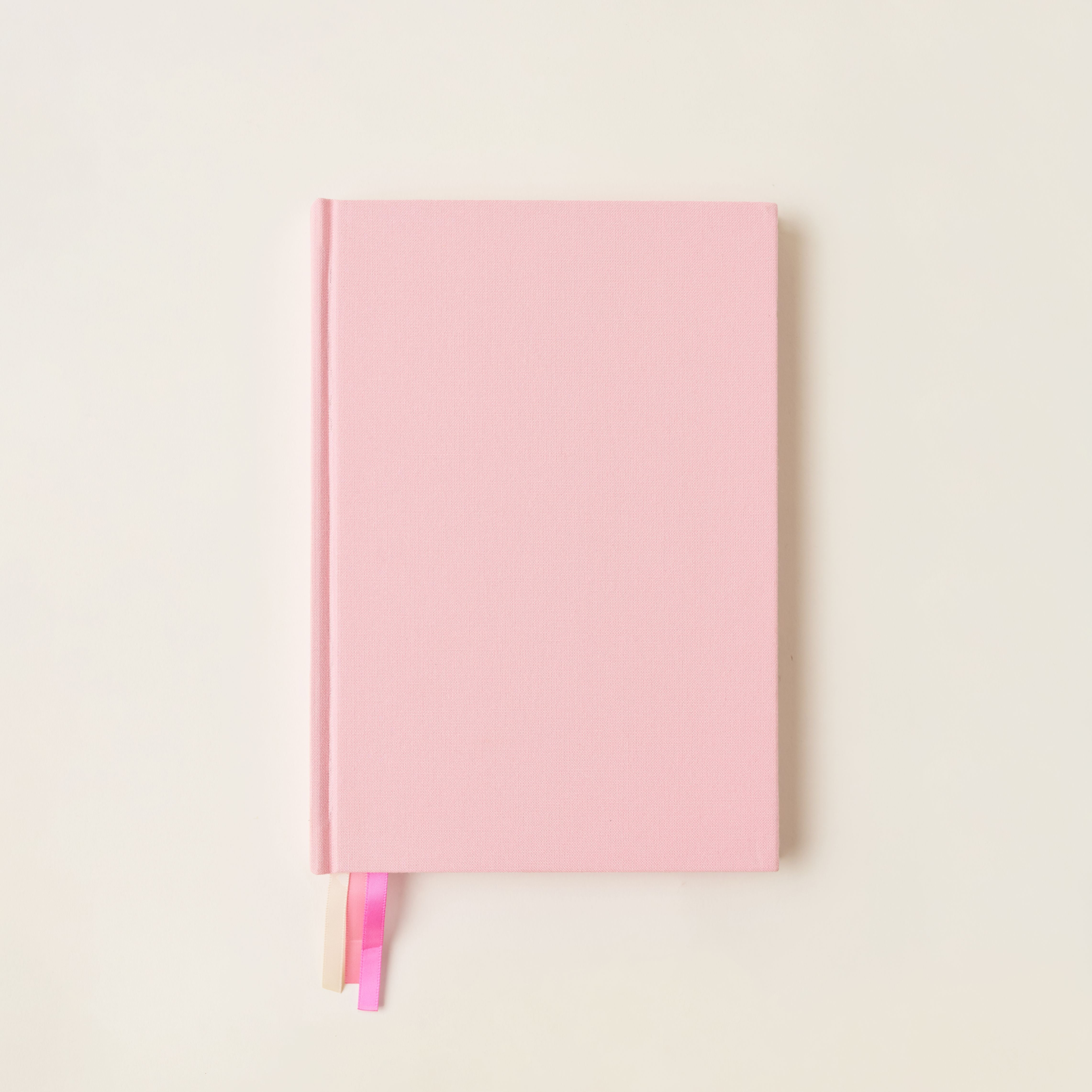 This vibrant pink journal features bold pink covers and matching sides, with thick, high-quality pages for a luxurious feel. Three ribbon markers make it easy to keep track of your thoughts. Its playful vibe and striking colour add a cheerful touch to any space, making it the perfect companion for your creative endeavours.