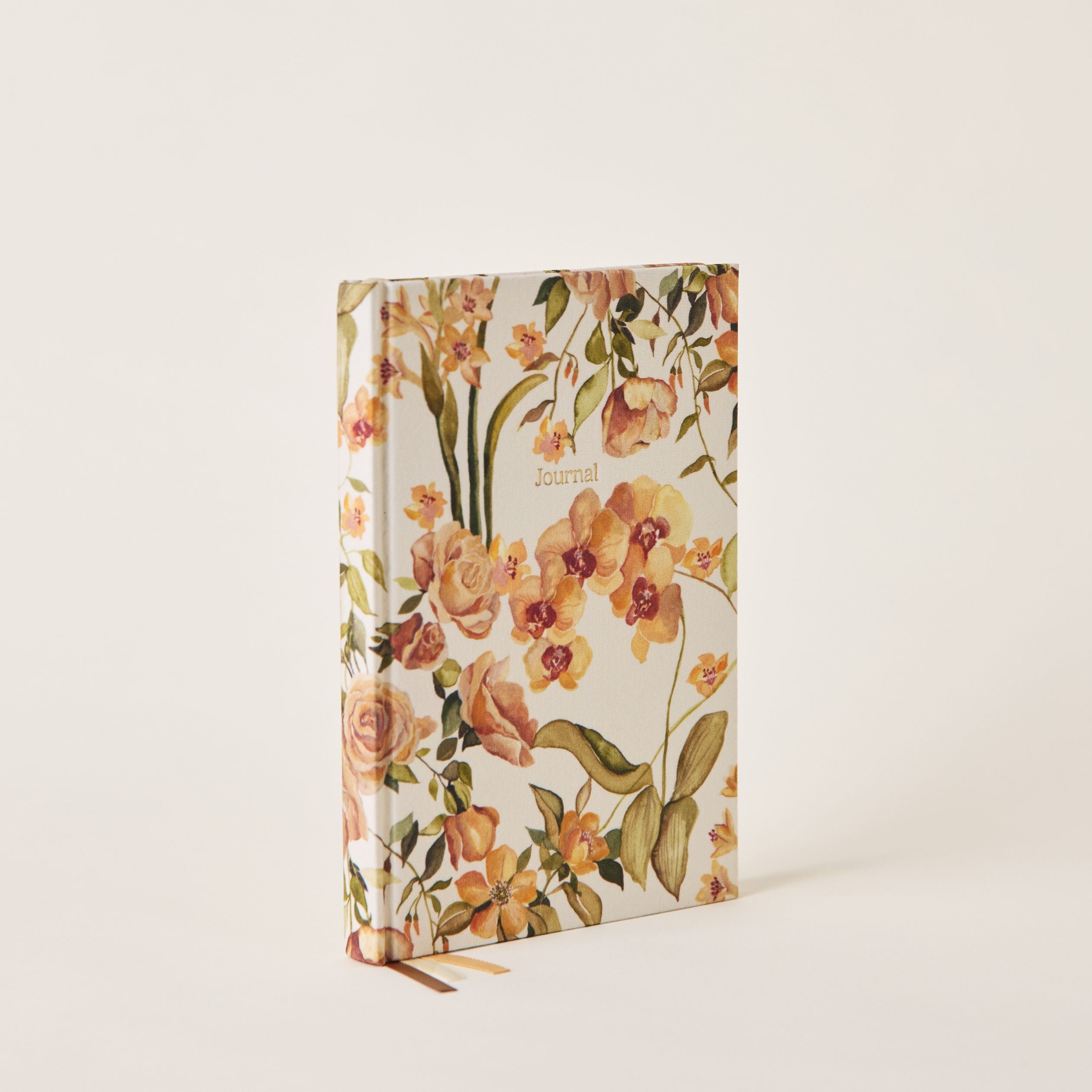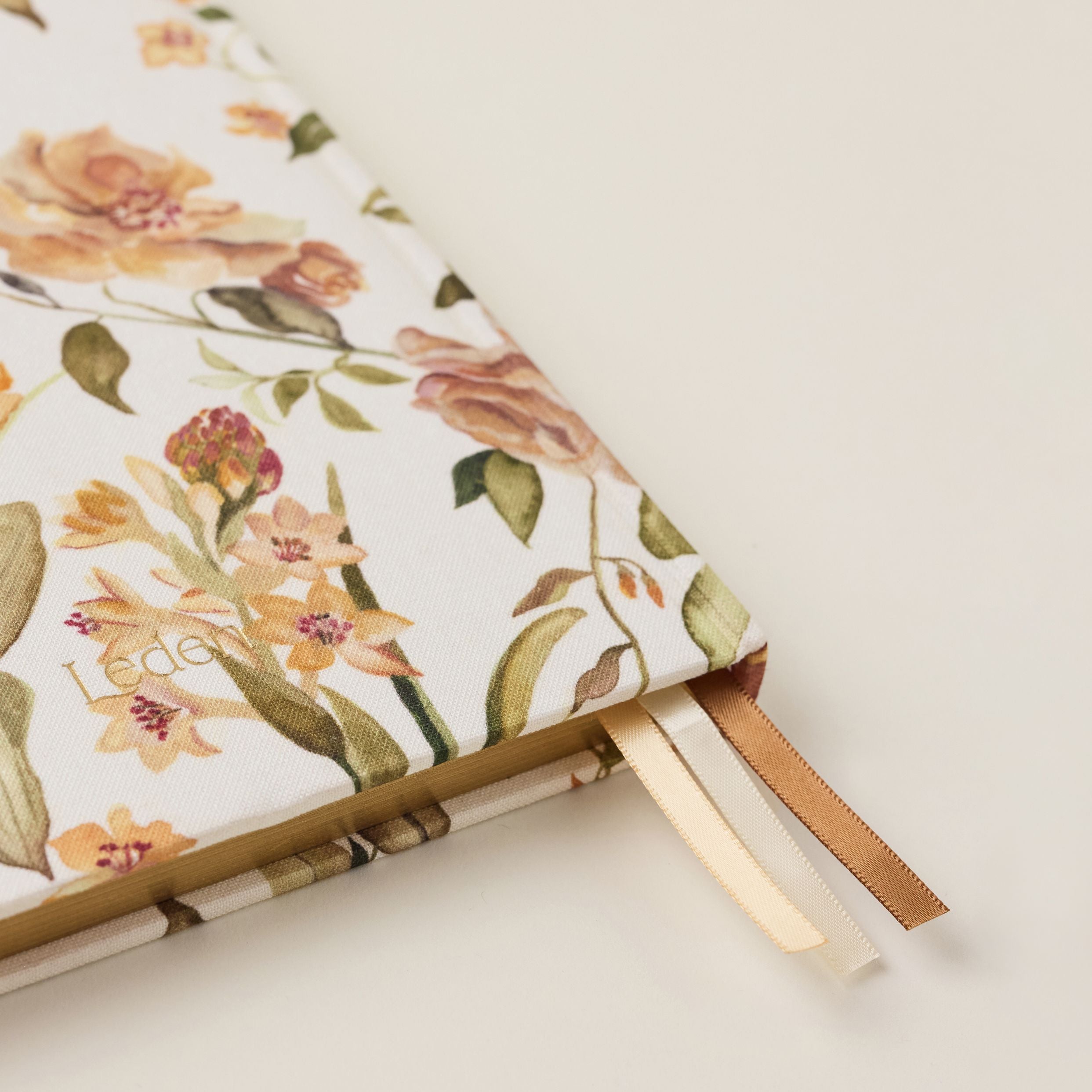 This elegant design features a delicate blend of orchids, roses, and lilies, creating a soft and sophisticated aesthetic. The gentle golden tones of the flowers exude timeless beauty and refinement, making it a versatile design that complements both outfits and interiors. Subtle yet graceful, this journal embodies a quiet elegance that adds a touch of luxury to any space or style.