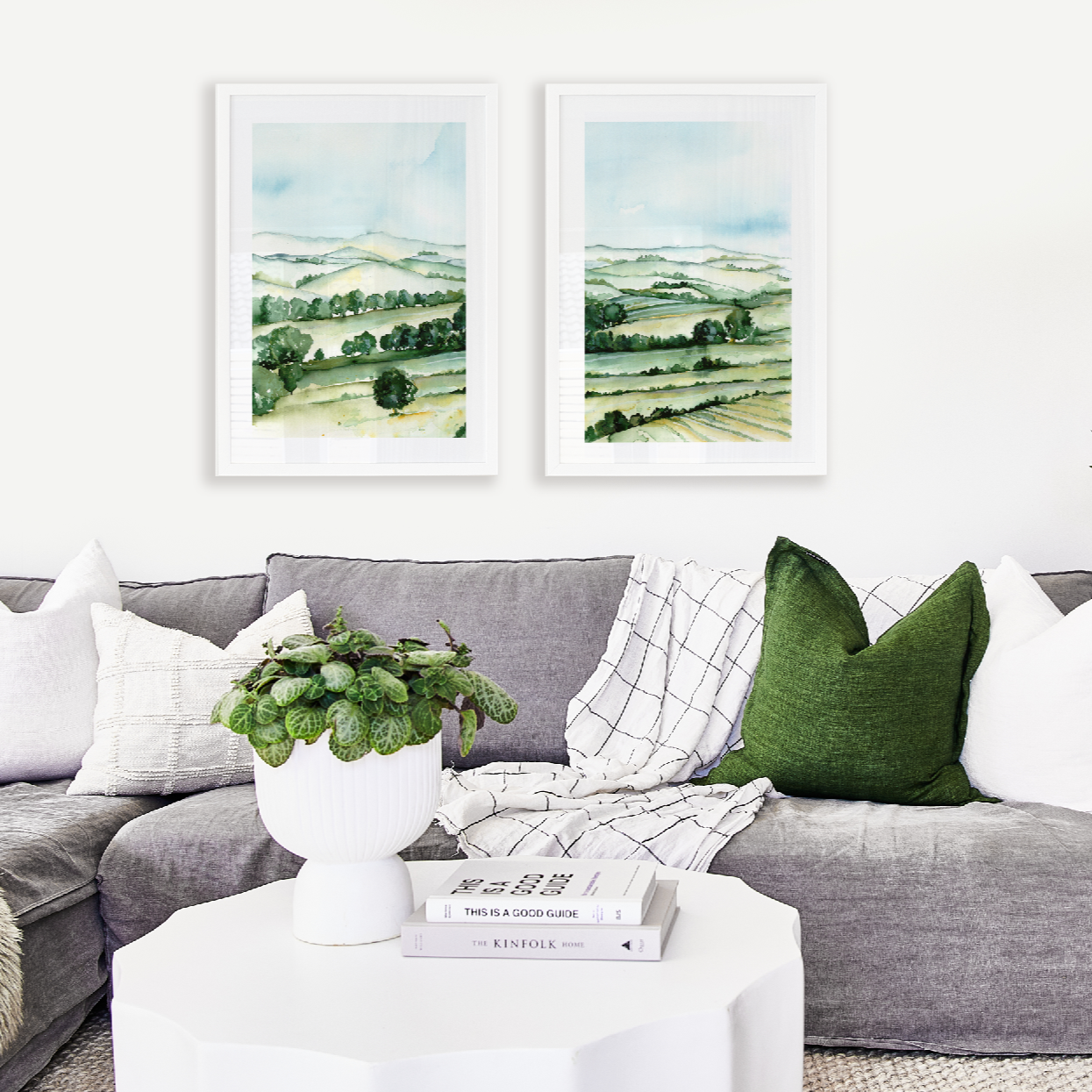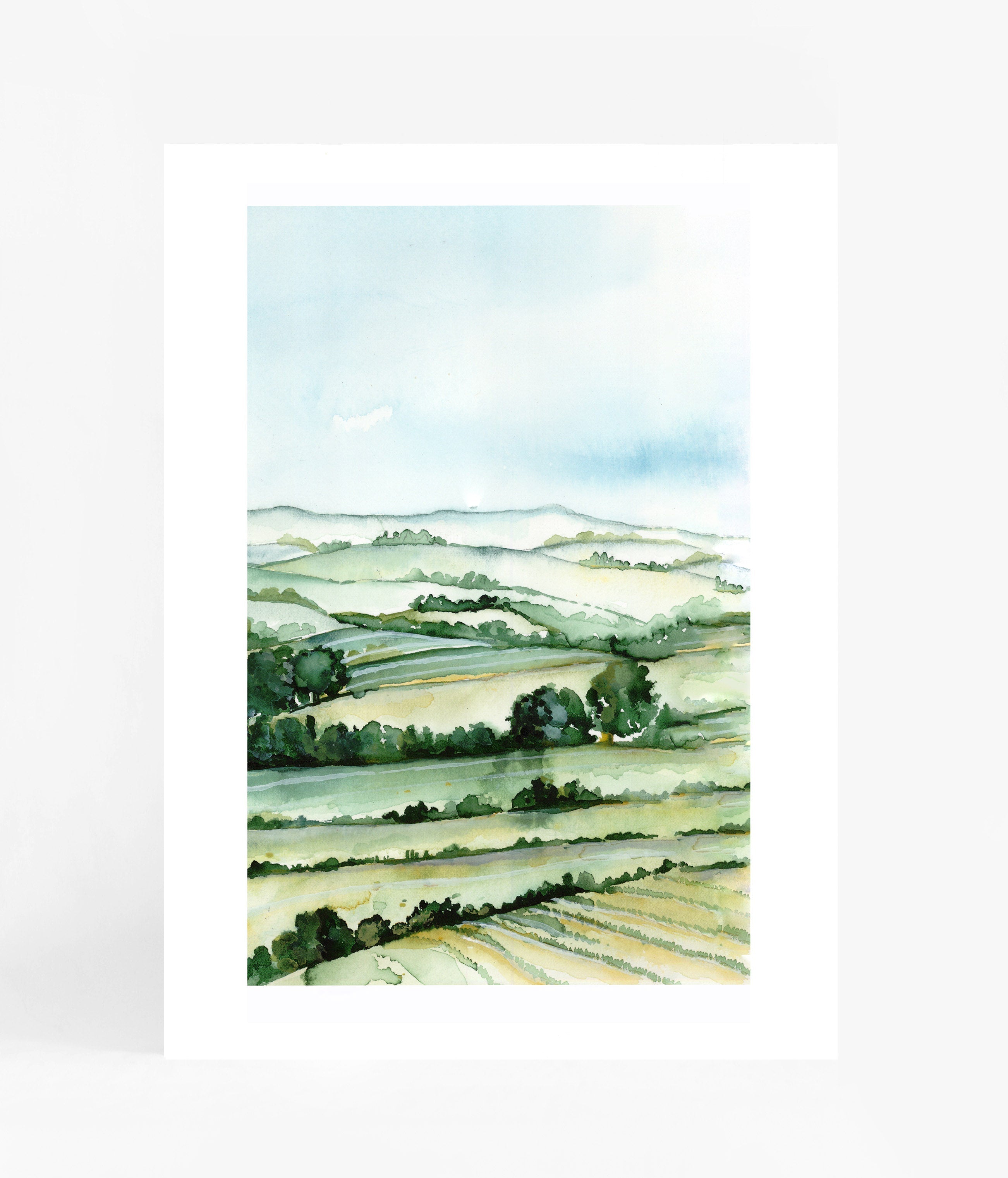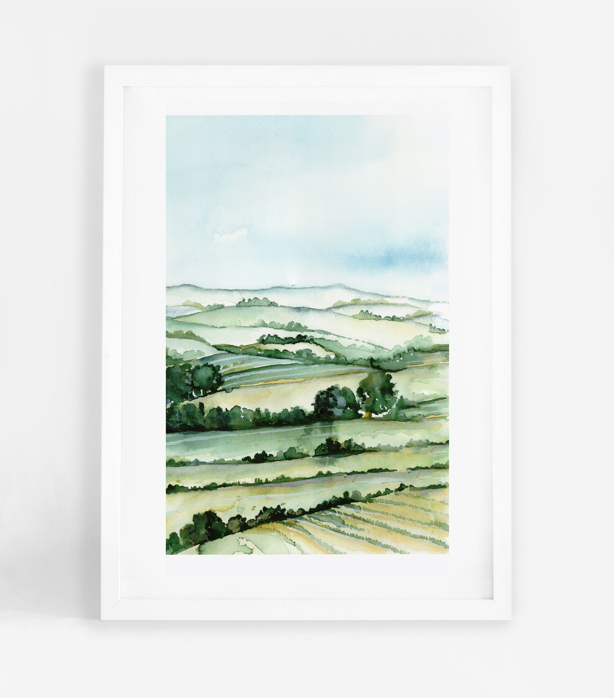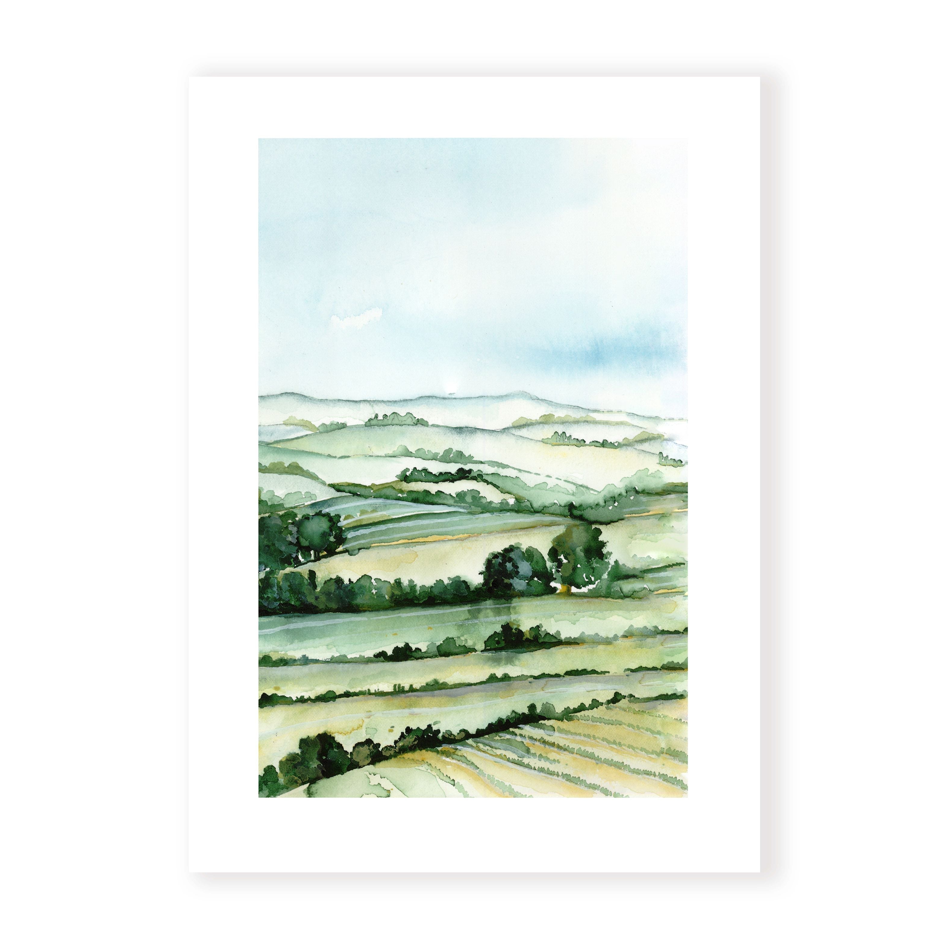 Our English Country Scape II is an ode to some of our most incredible landscapes. Gentle palettes and soft defining shapes, captured through watercolour.. Uniquely designed by Leden.
