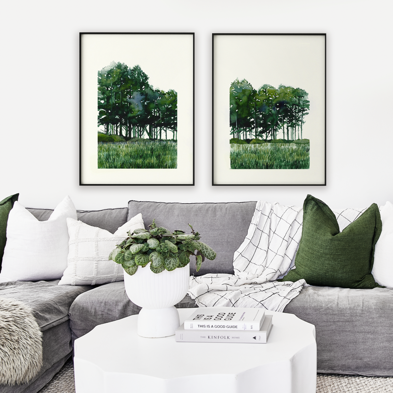 Our Forest II is an ode to some of our most incredible landscapes. Gentle palettes and soft defining shapes, captured through watercolour. Uniquely designed by Leden.