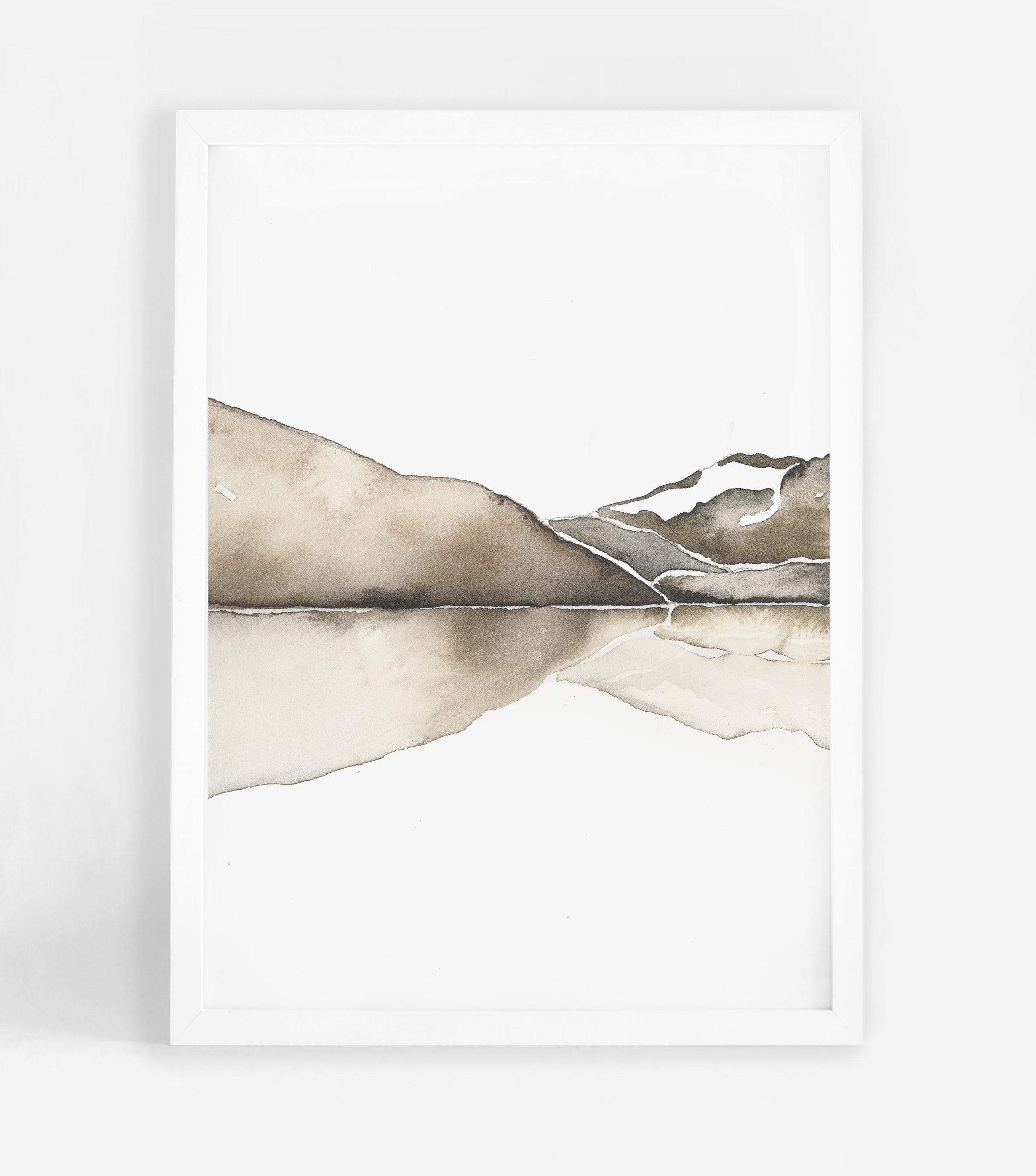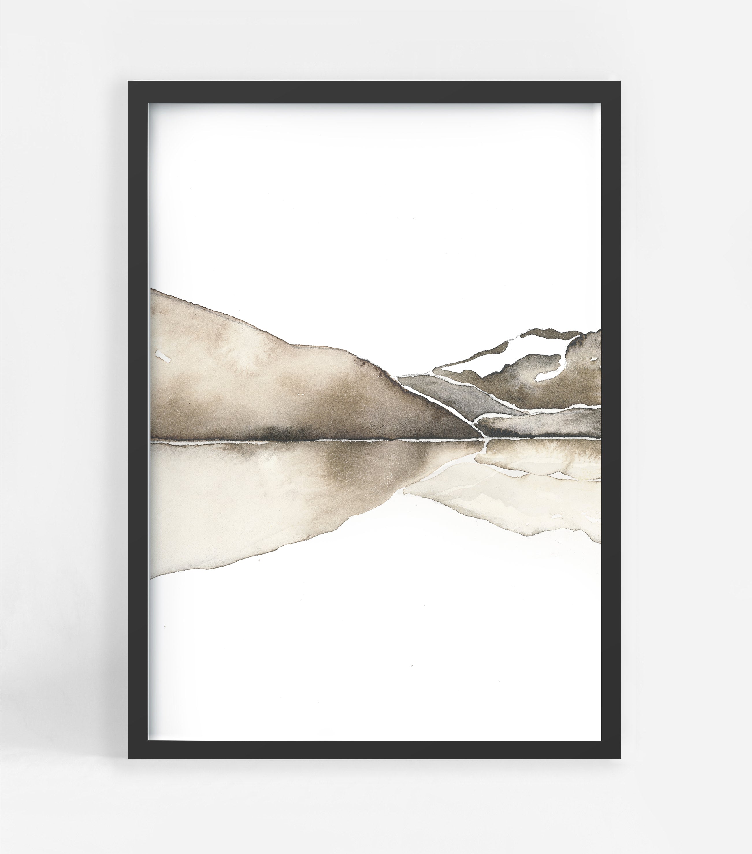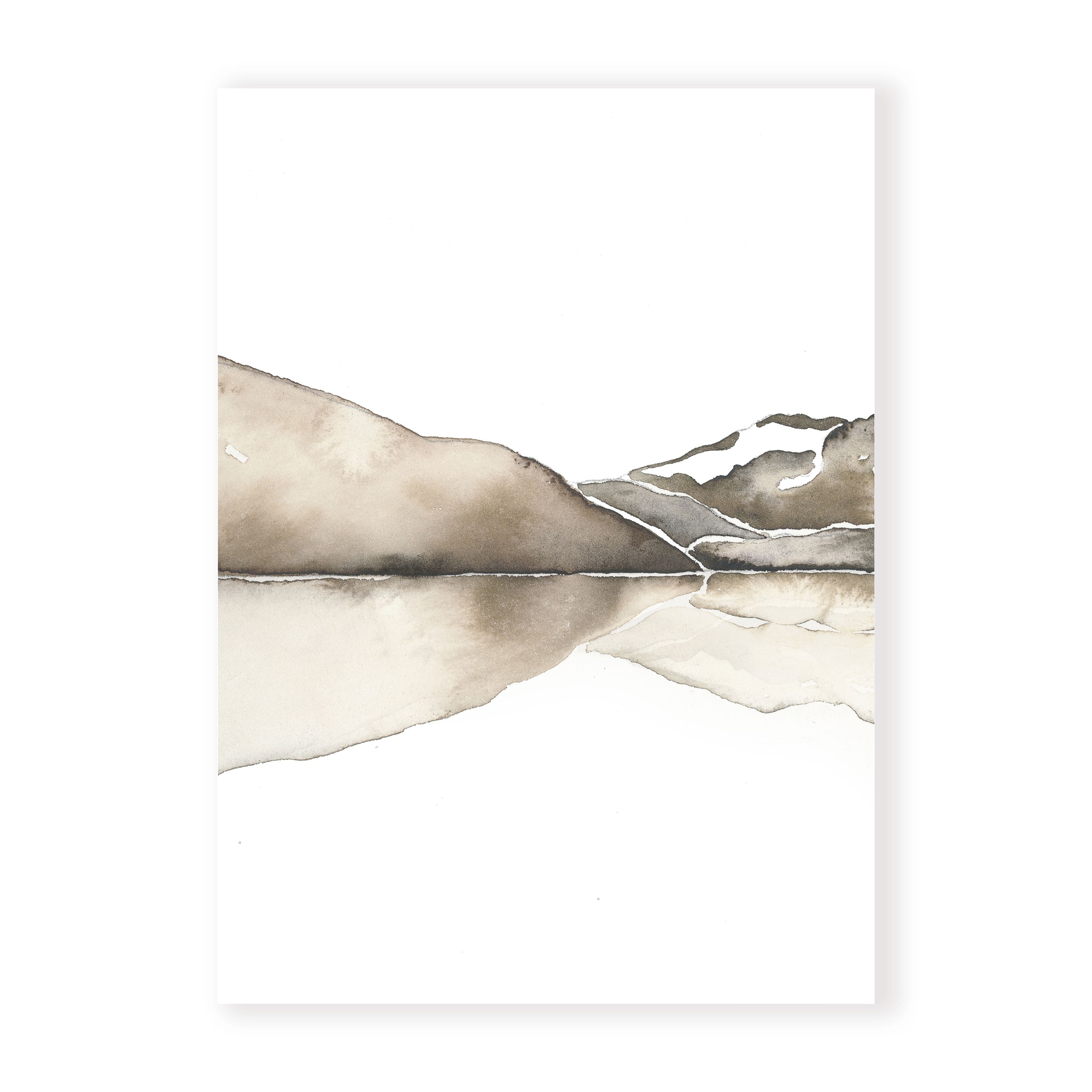 Our Golden Te Anau I is an ode to some of our most incredible mountains and landscapes. Gentle palettes and soft defining shapes, captured through watercolour.