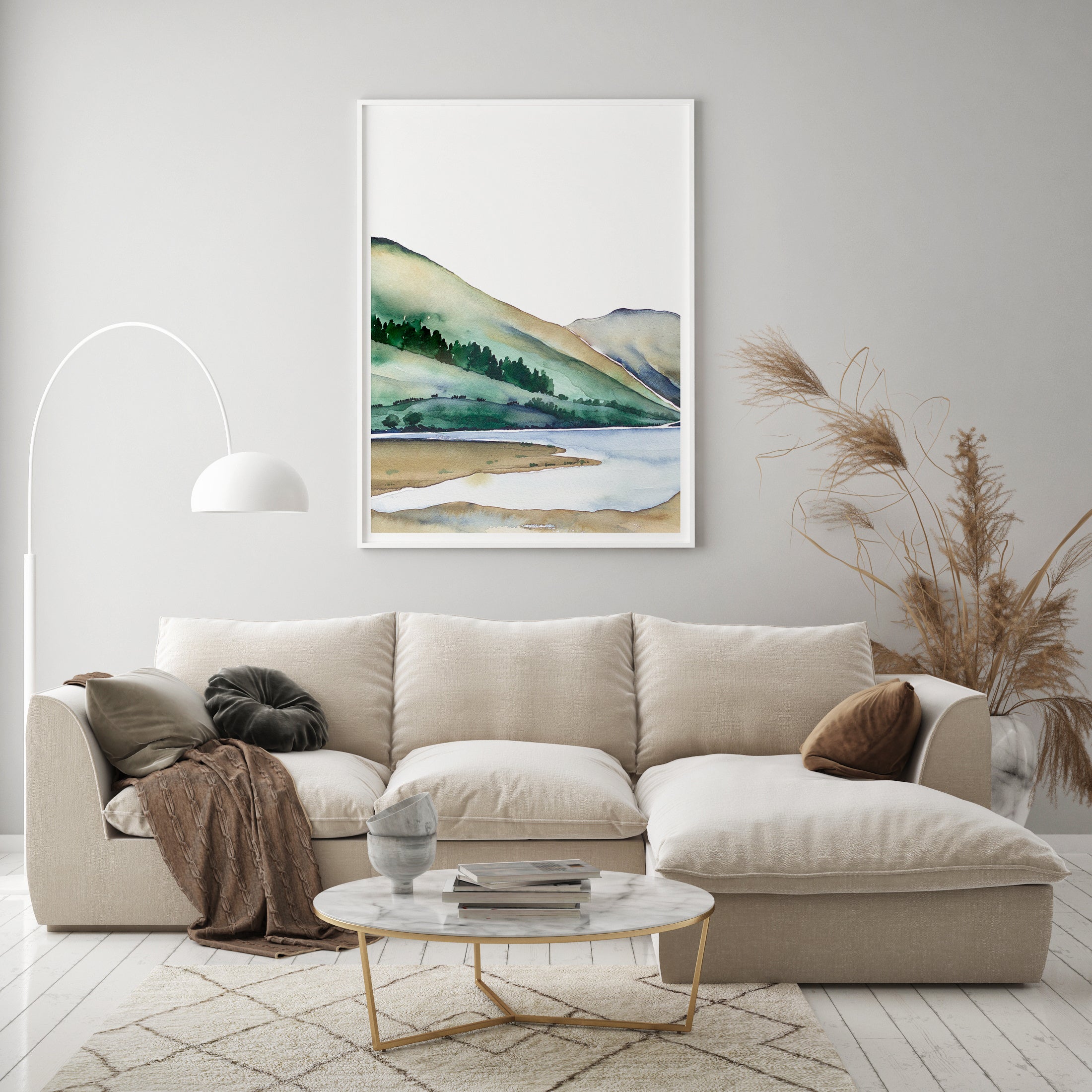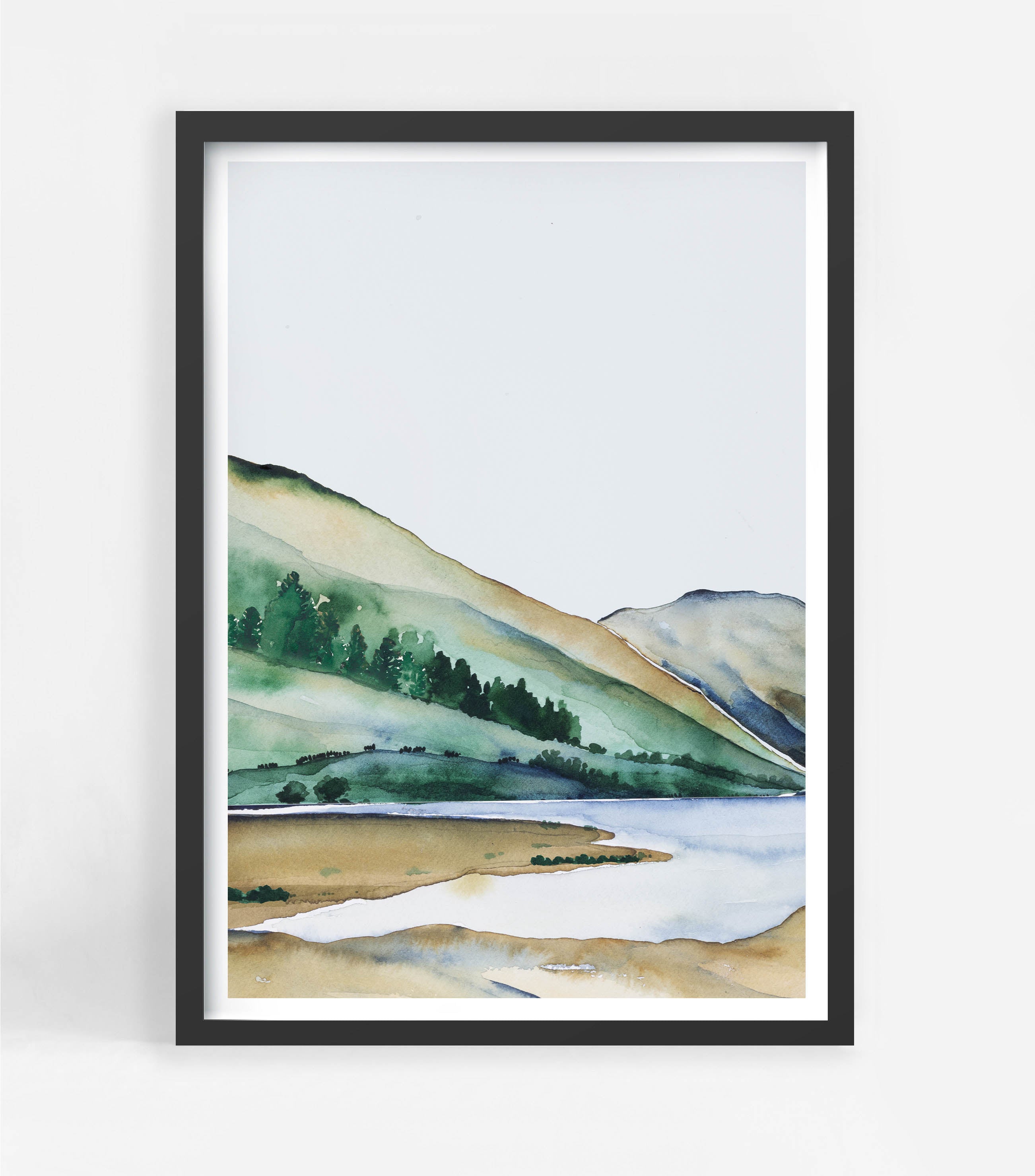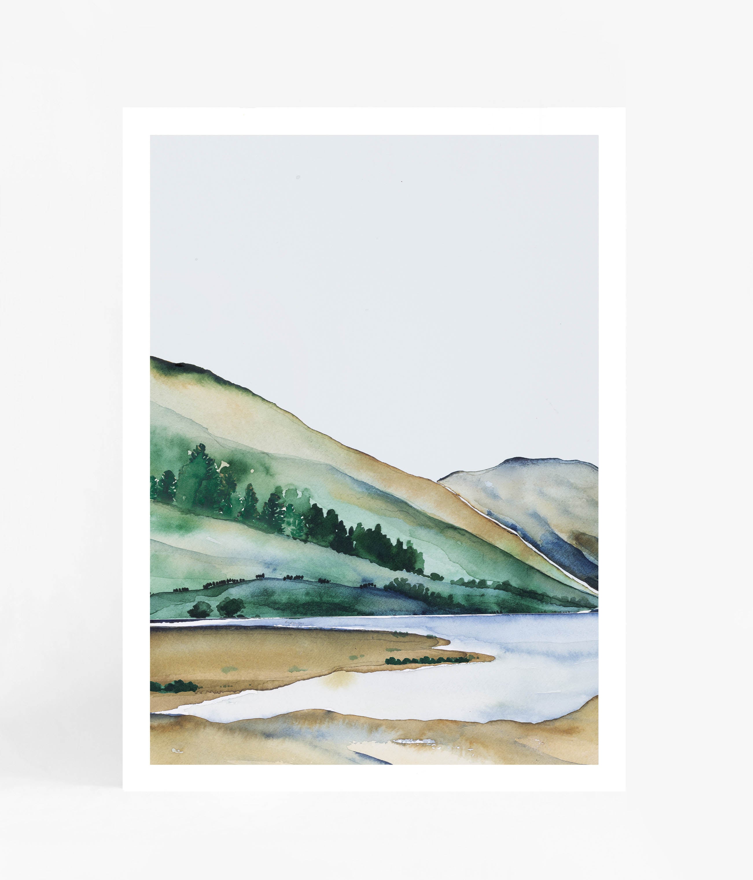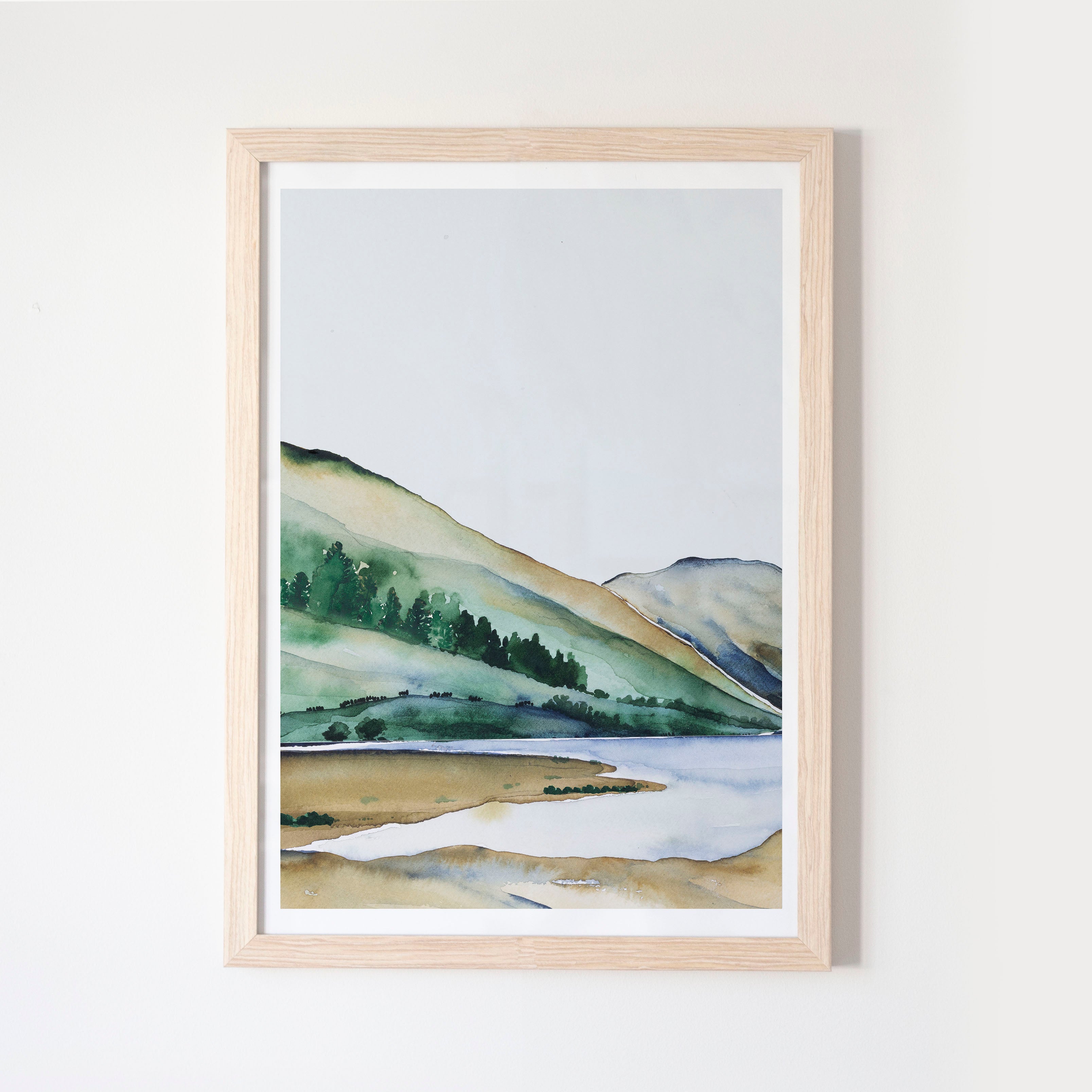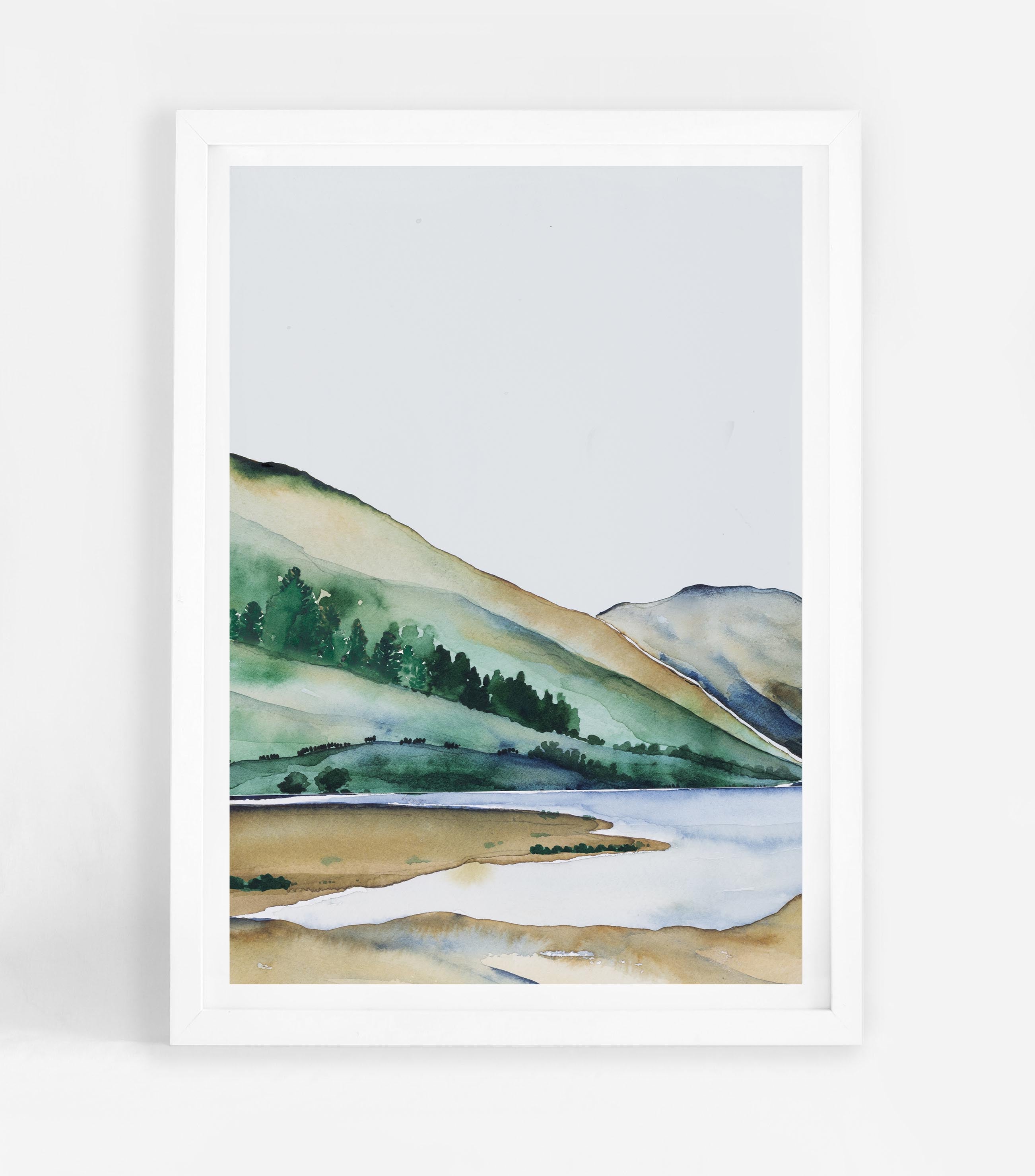 Our Lake Kirkpatrick I is an ode to some of our most incredible mountains and landscapes. Gentle palettes and soft defining shapes, captured through watercolour.