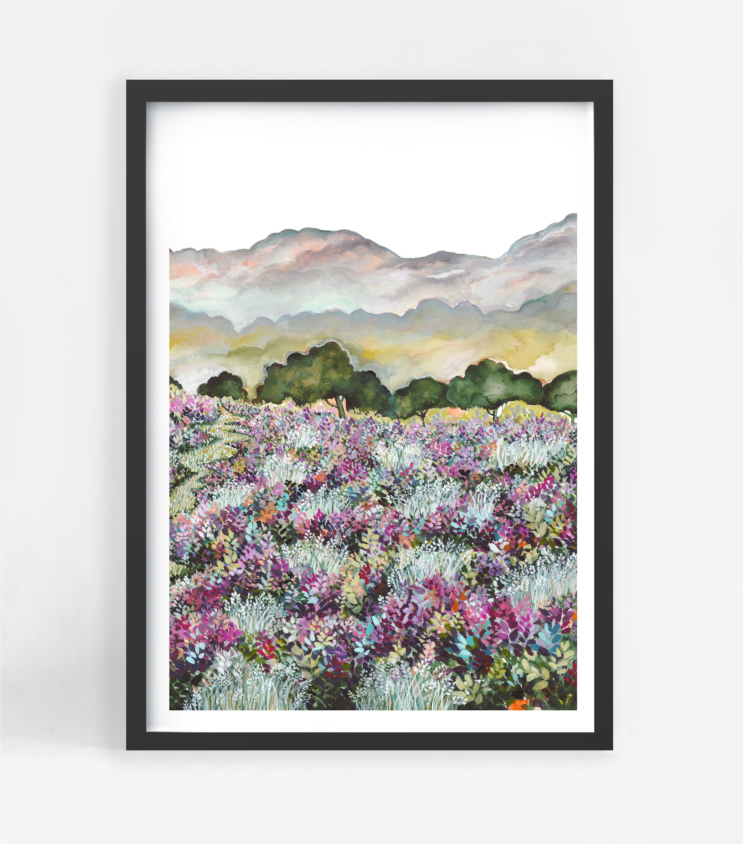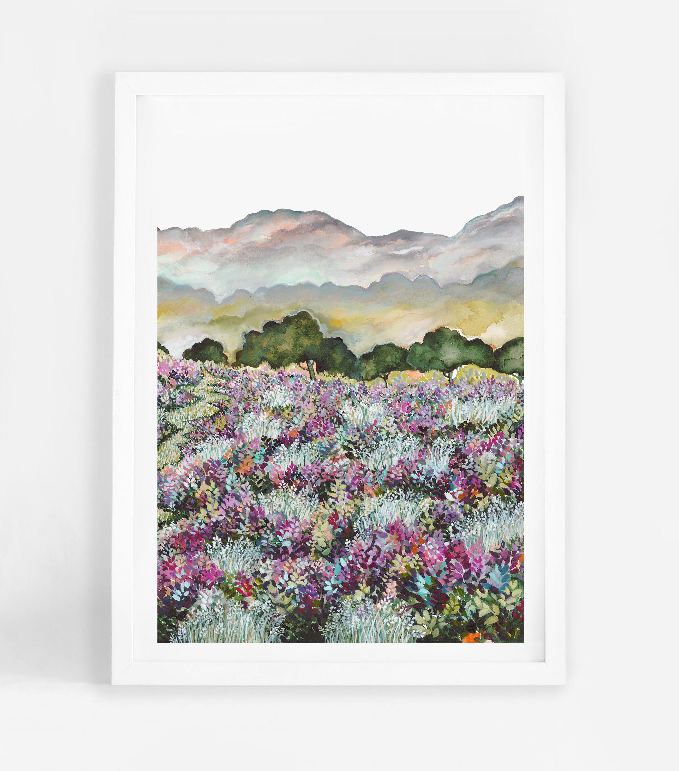 Lavender Fields II is one of our vibrant floral pieces, infused with pops of colour, to brighten up your walls. Uniquely designed by Leden.