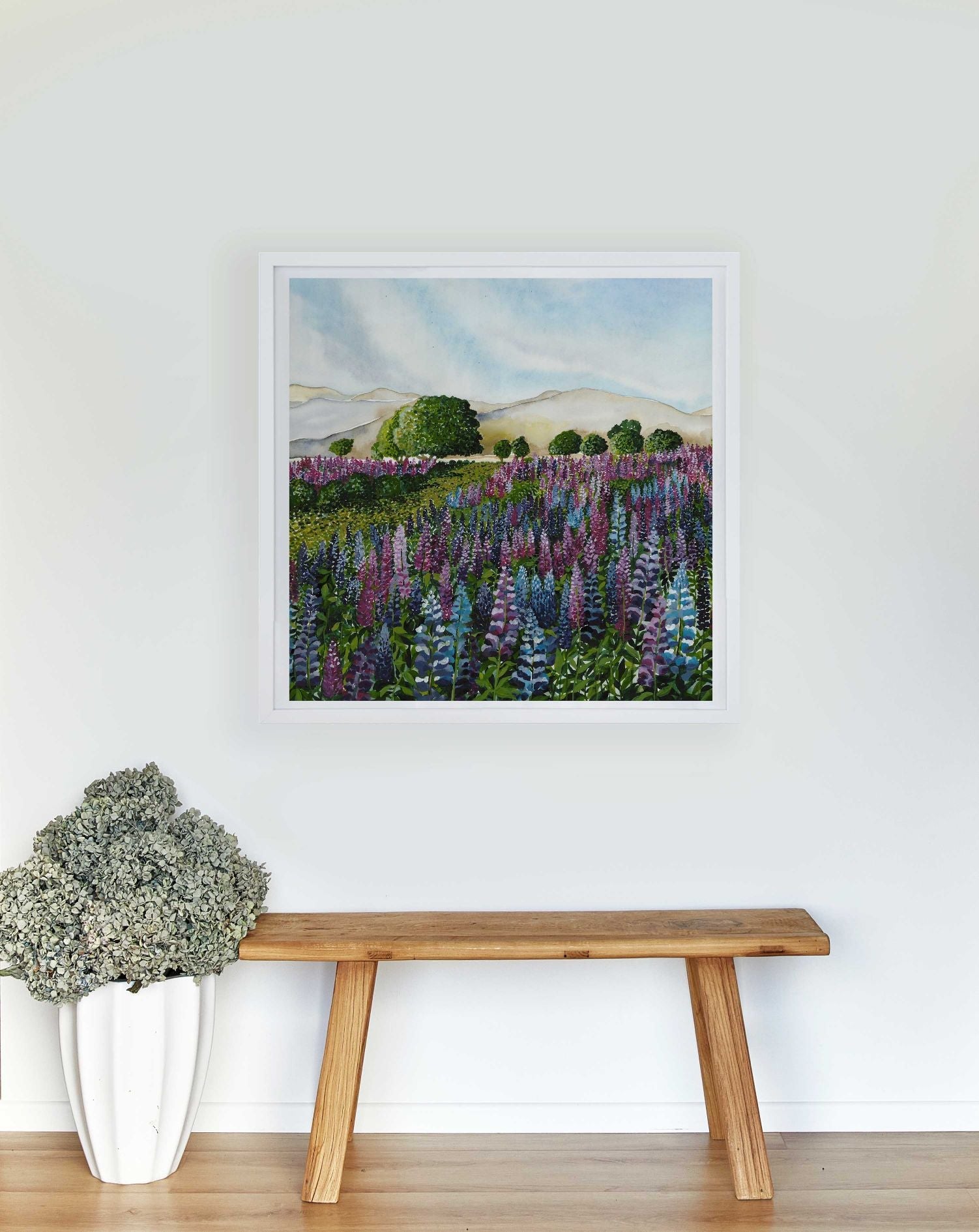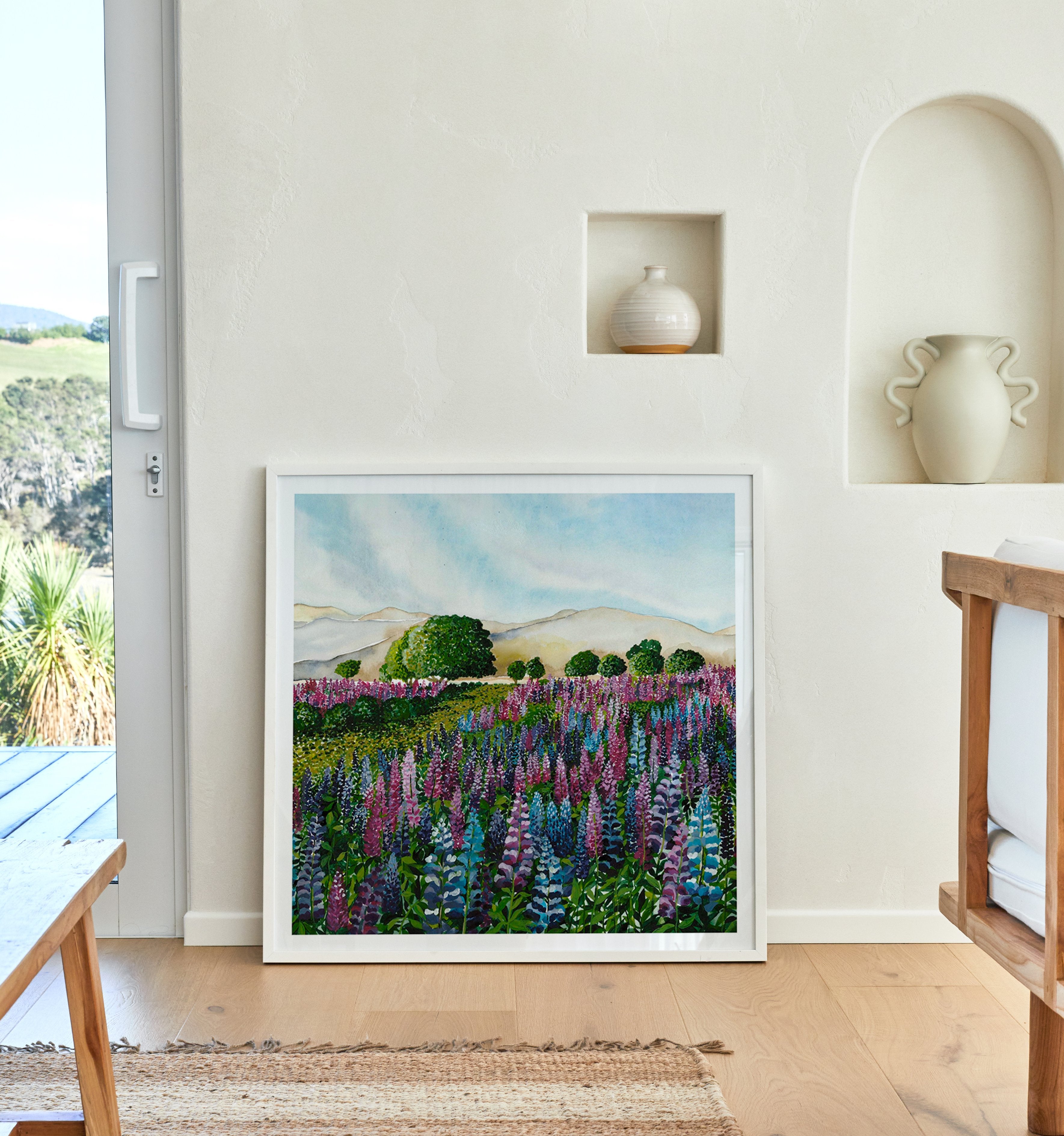 Lupin Fields Square is one of our vibrant floral pieces, infused with pops of colour, to brighten up your walls. Uniquely designed by Leden.