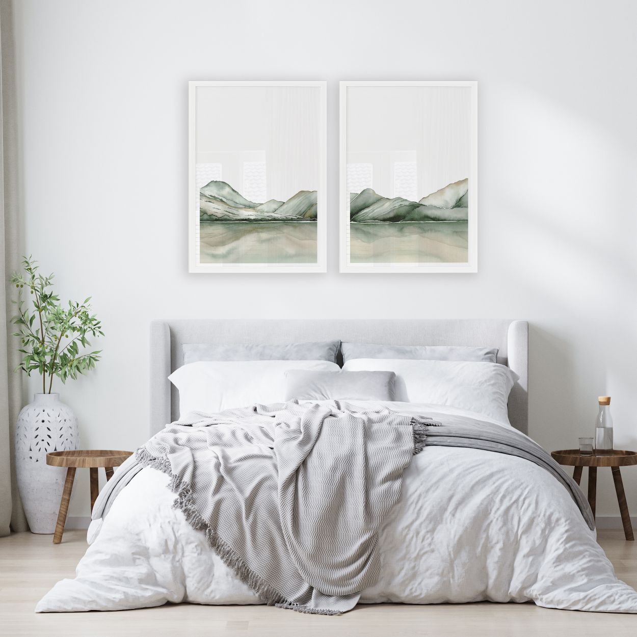Our Moke Lake Pair is an ode to some of our most incredible mountains and landscapes. Gentle palettes and soft defining shapes, captured through watercolour. This pair includes: Moke Lake I, Moke Lake II. Uniquely designed by Leden, this piece is crafted to create the perfect backdrop for a range of interiors.