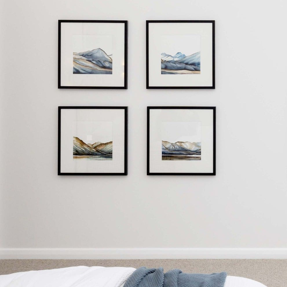 Mount Aspiring Square I is an ode to some of our most incredible mountains and landscapes. Gentle palettes and soft defining shapes, captured through watercolour.