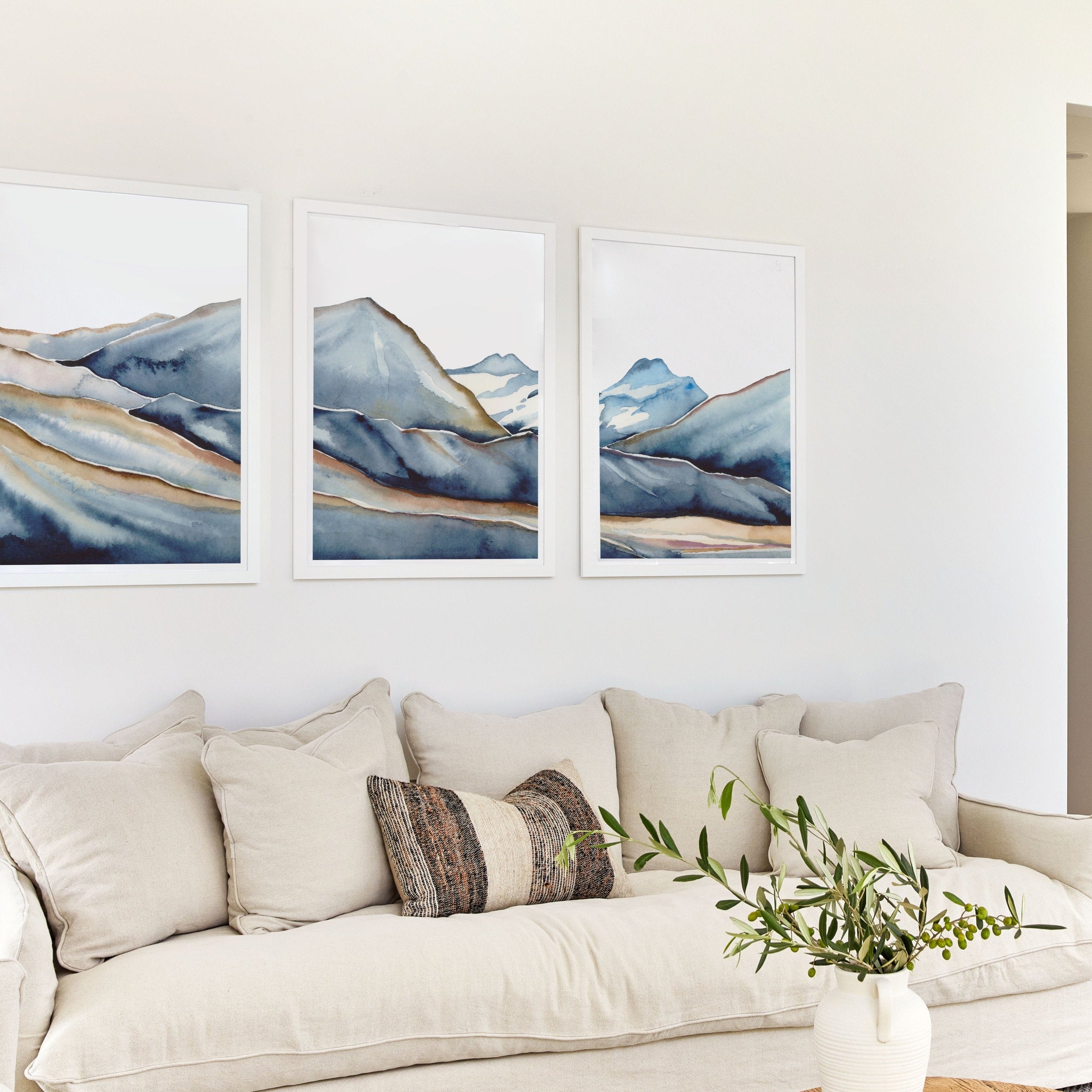 Our Mount Aspiring Triplet is an ode to some of our most incredible mountains and landscapes. Gentle palettes and soft defining shapes, captured through watercolour.. This triplet includes: Mount Aspiring I, Mount Aspiring II, Mount Aspiring III. Uniquely designed by Leden, this piece is crafted to create the perfect backdrop for a range of interiors.