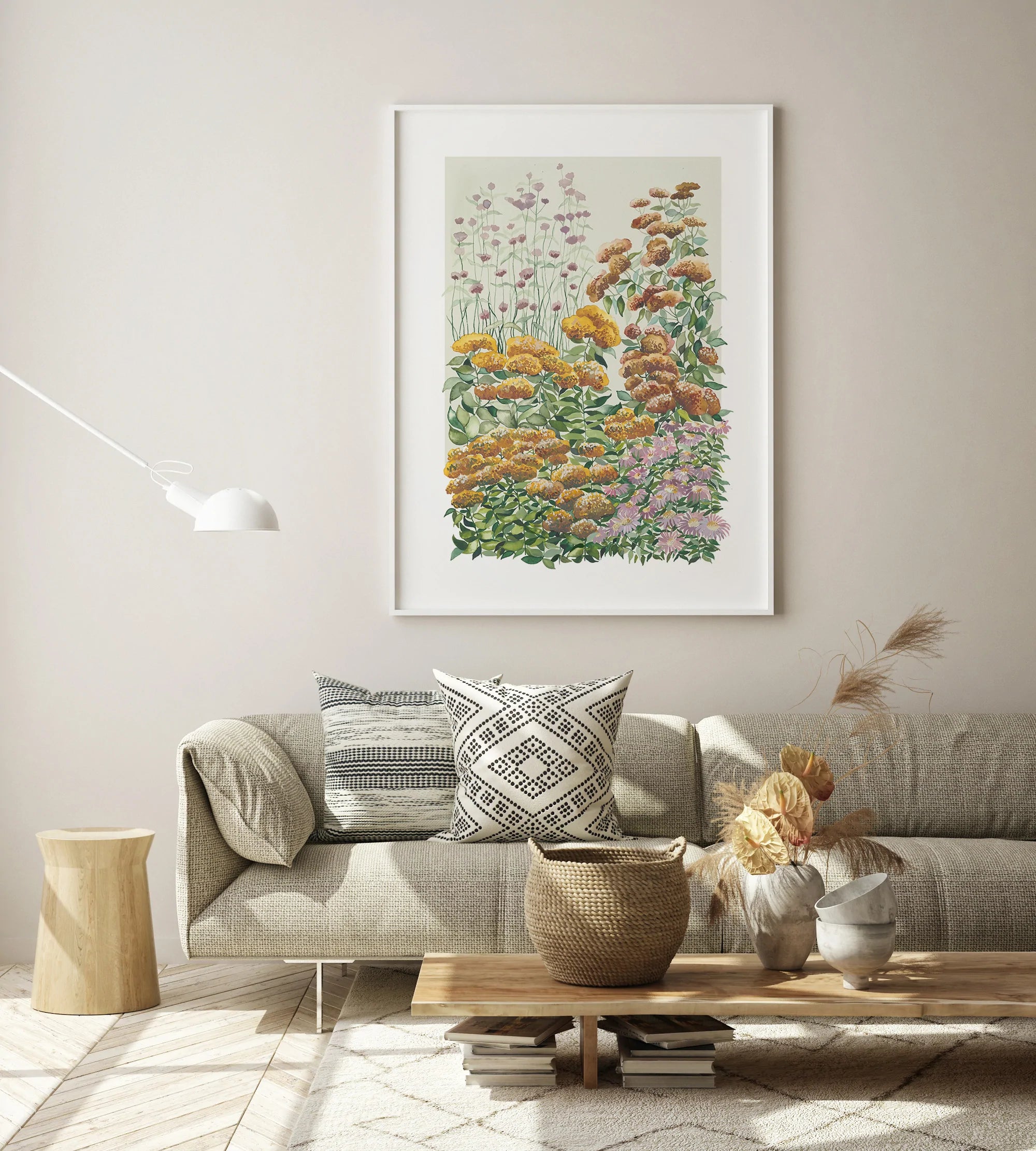 Mustard Flowers I is one of our vibrant floral pieces, infused with pops of colour, to brighten up your walls. Uniquely designed by Leden.