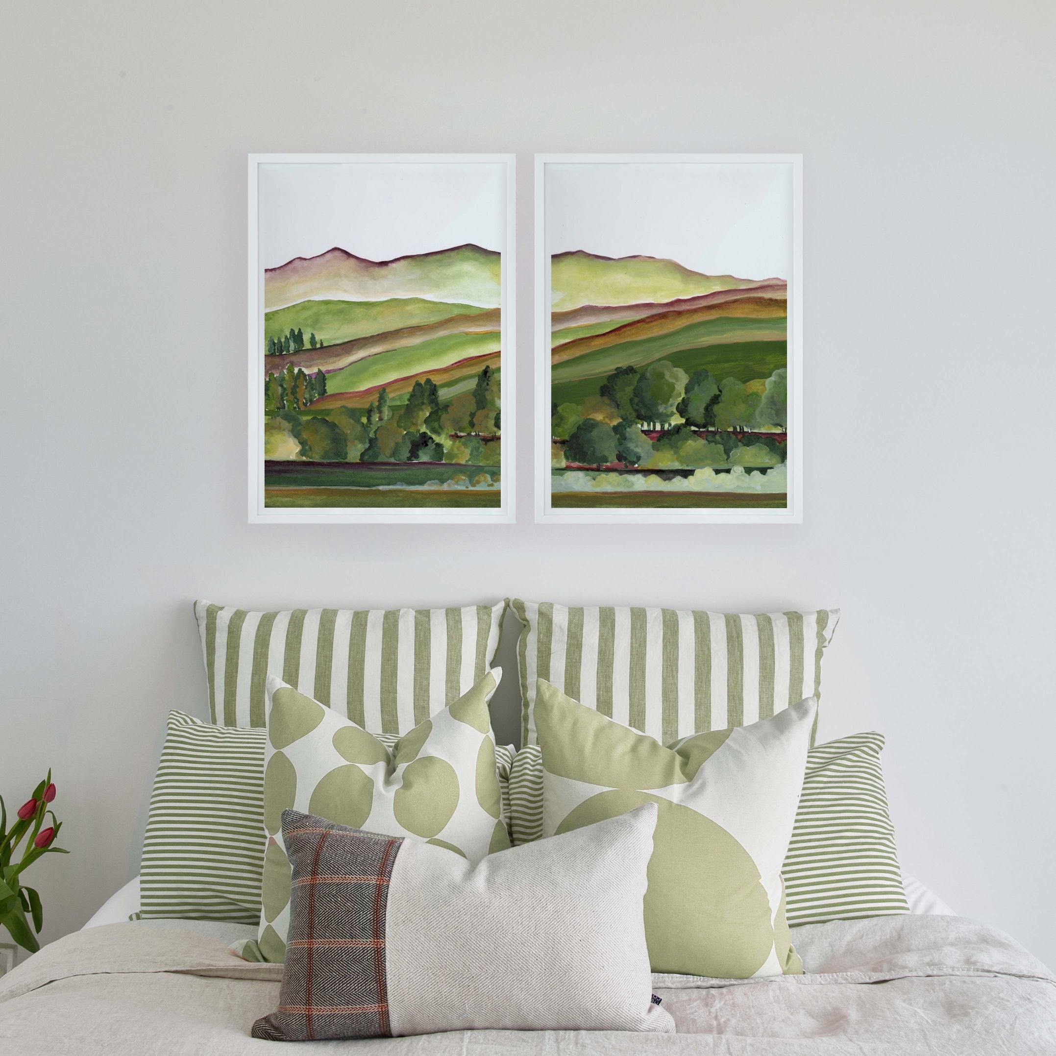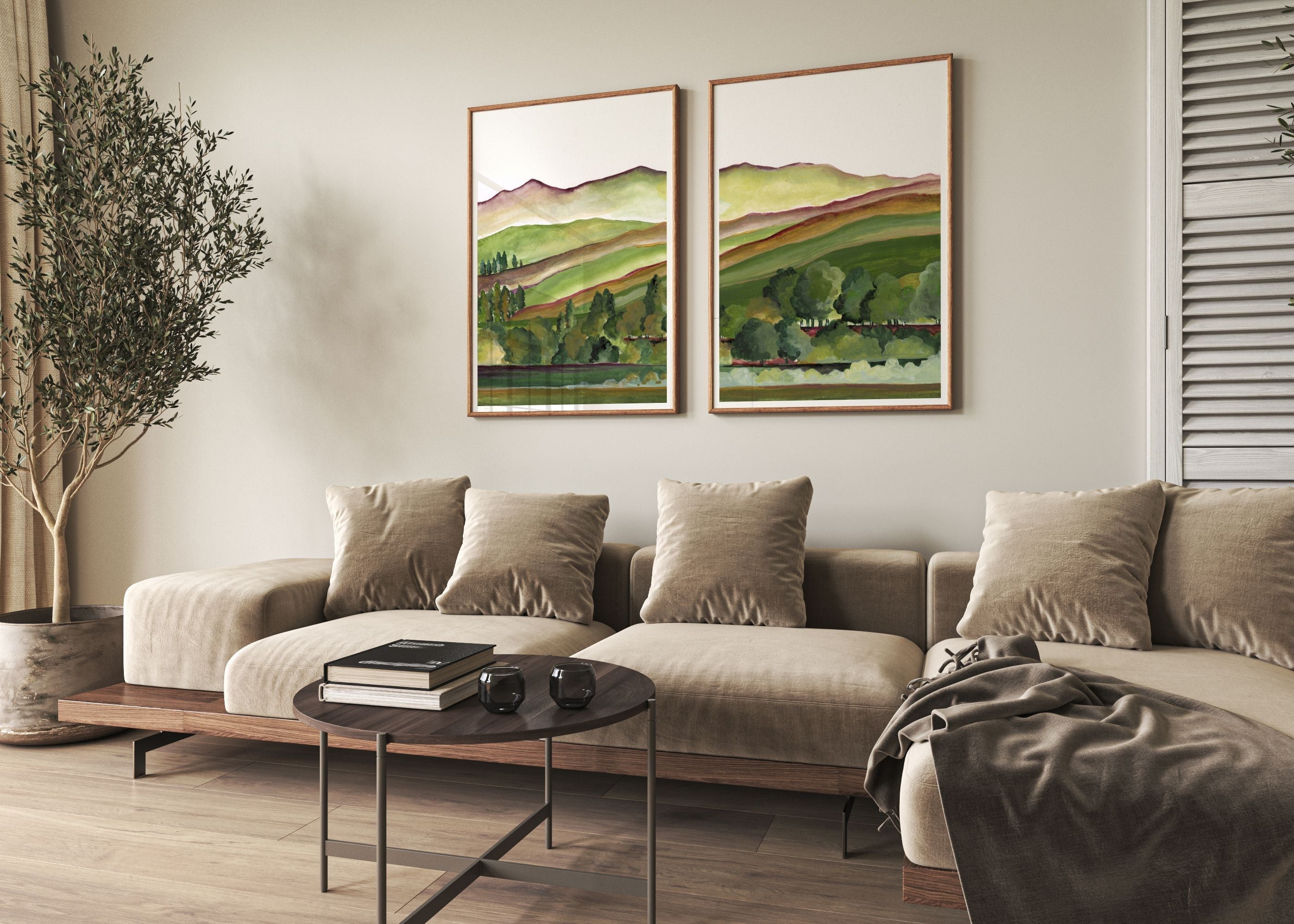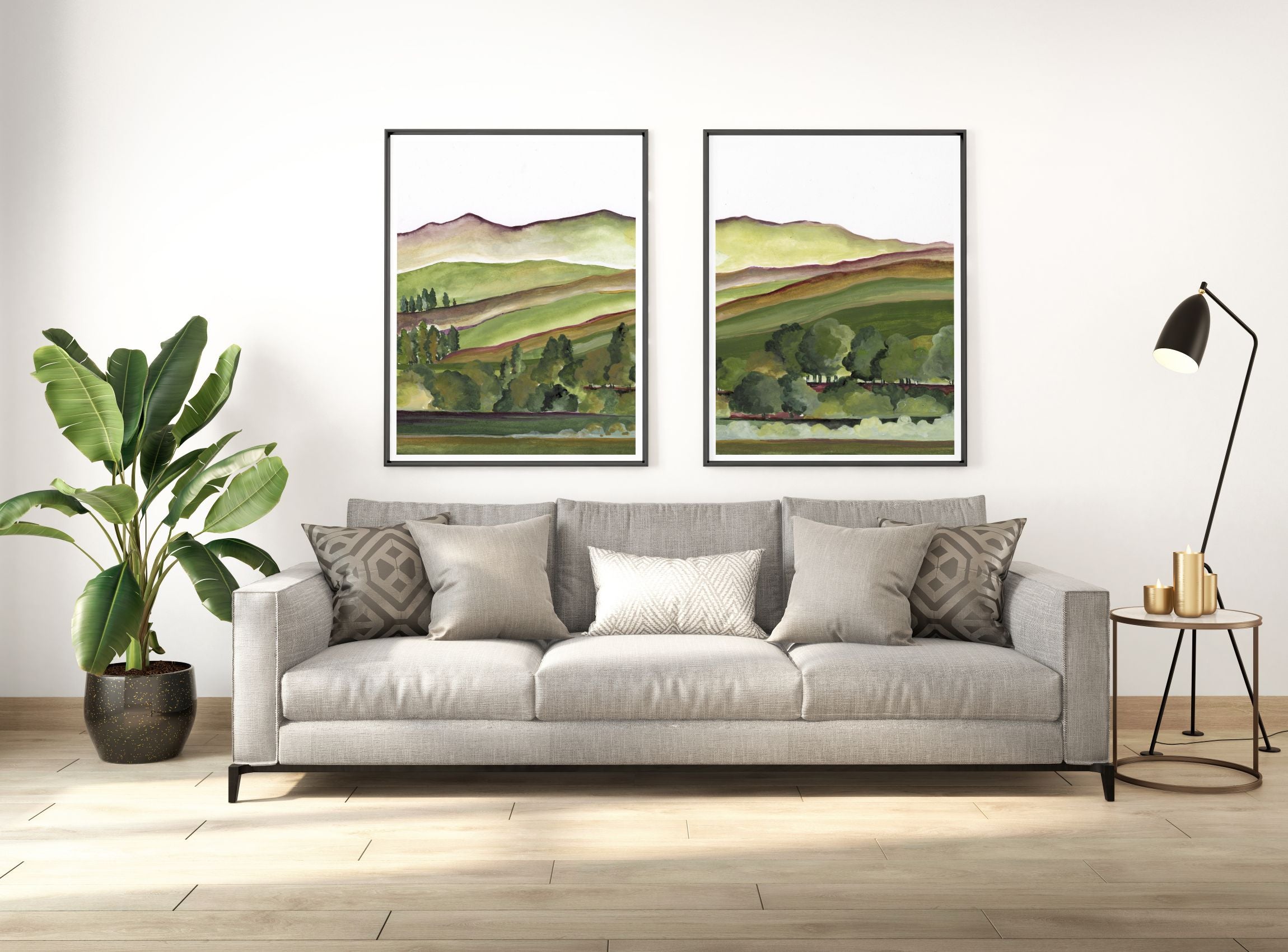 Our Rolling Hills Pair is an ode to some of our most incredible mountains and landscapes. Gentle palettes and soft defining shapes, captured through watercolour. This pair includes: Rolling Hills I, Rolling Hills II. Uniquely designed by Leden, this piece is crafted to create the perfect backdrop for a range of interiors.