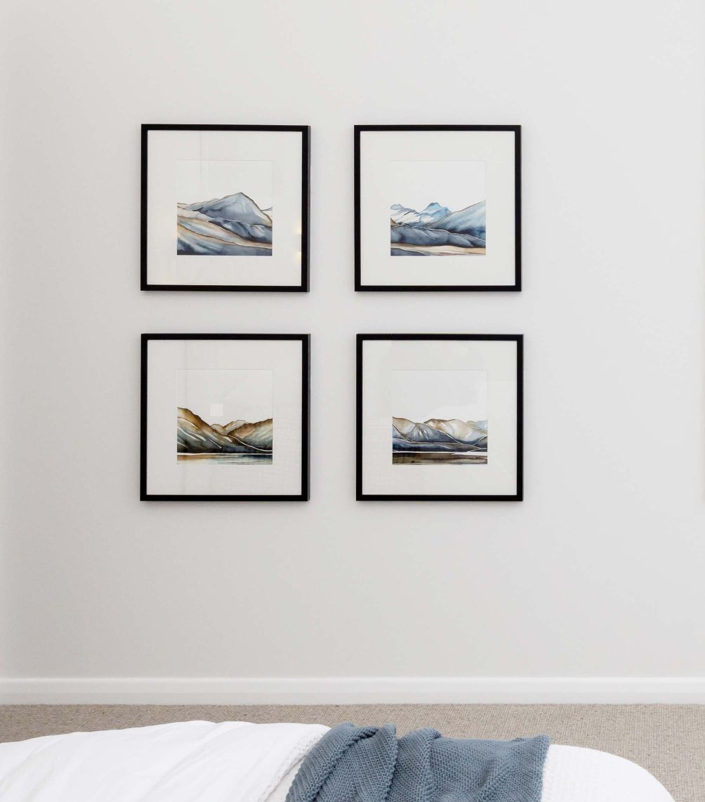 Blue Serene Set is made up of a set of squares which include: Mount Aspiring Square I, Mount Aspiring Square IIGolden Square I,Golden Square II. Uniquely designed by Leden, this piece is crafted to create the perfect backdrop for a range of interiors.