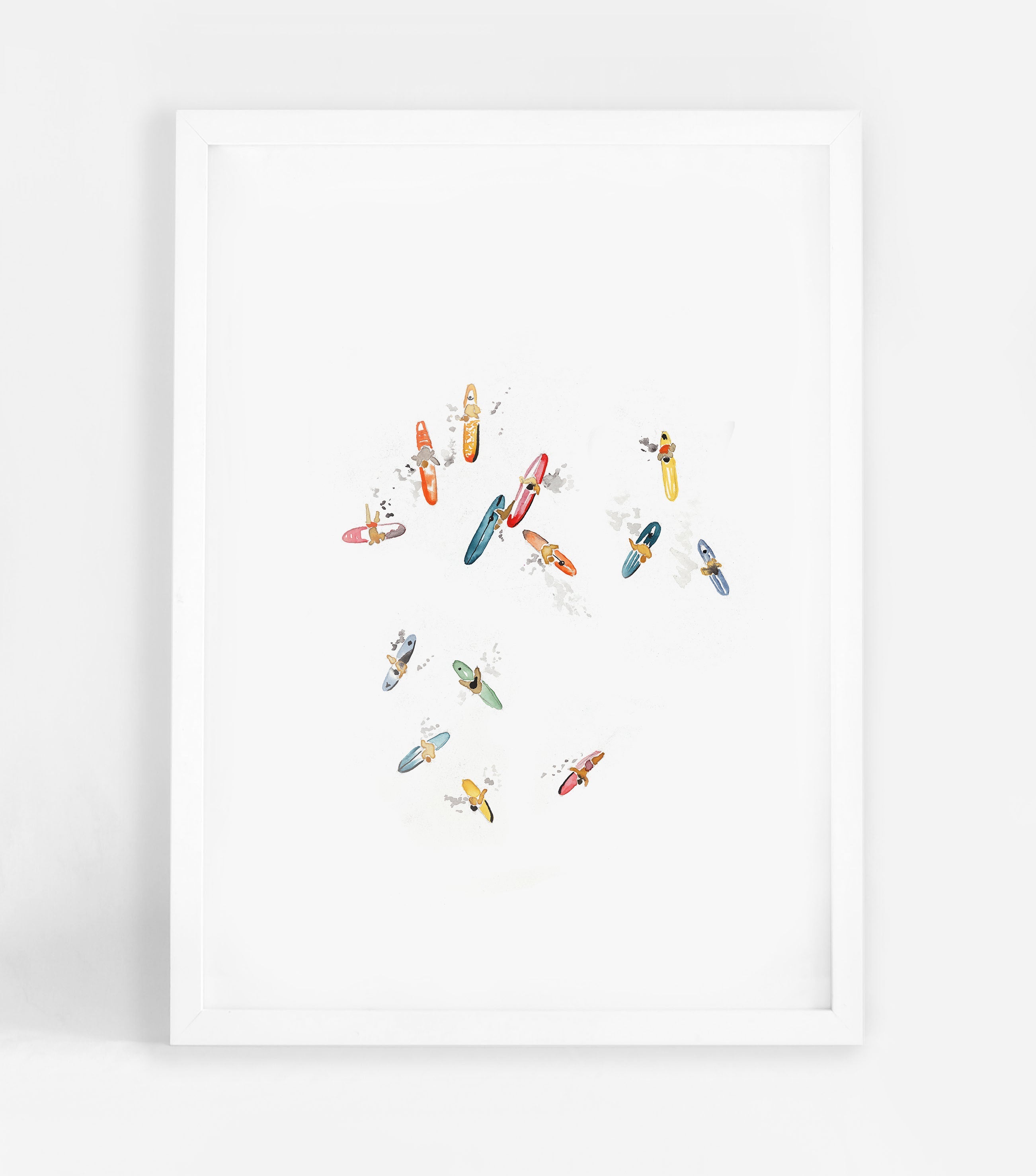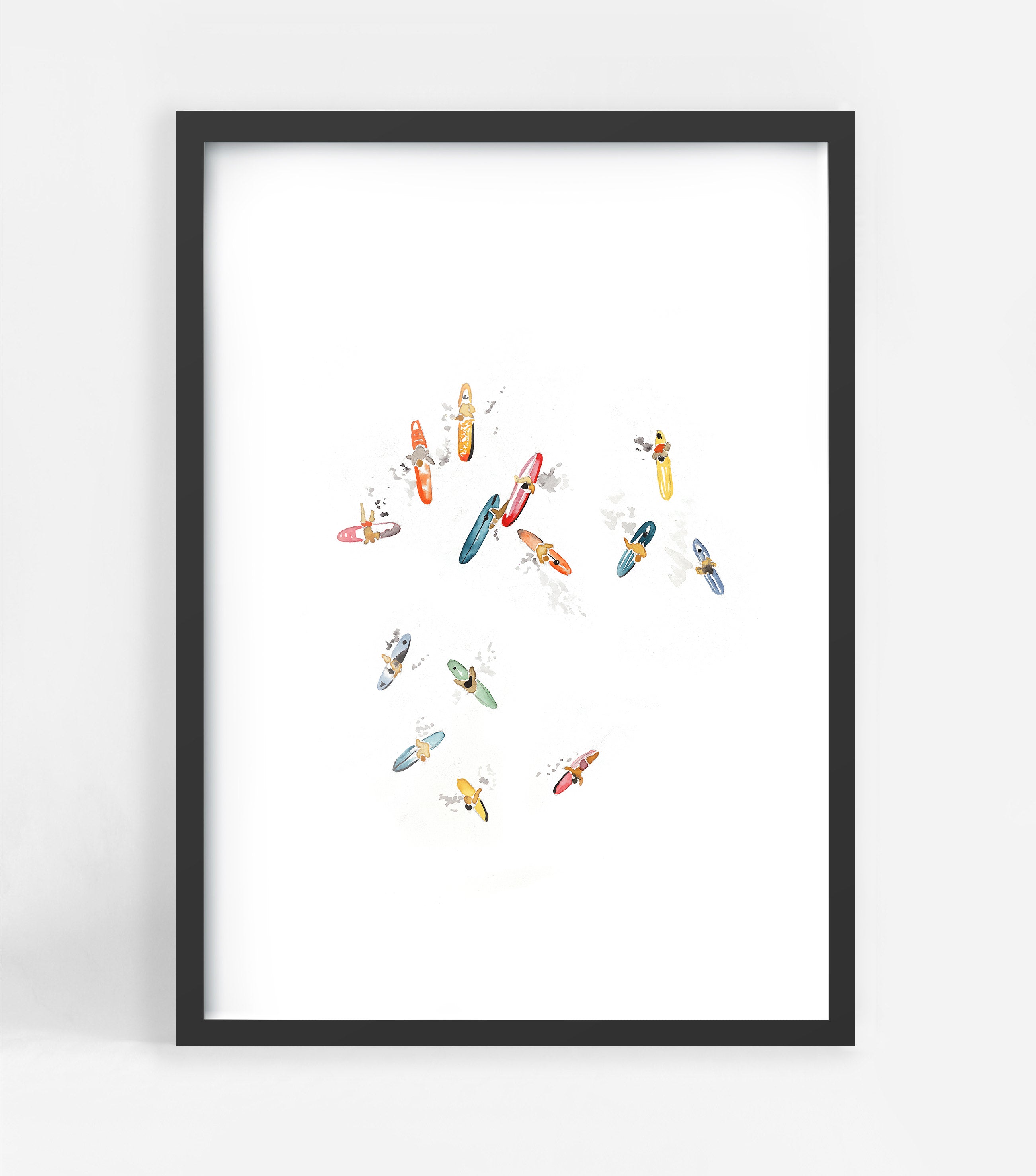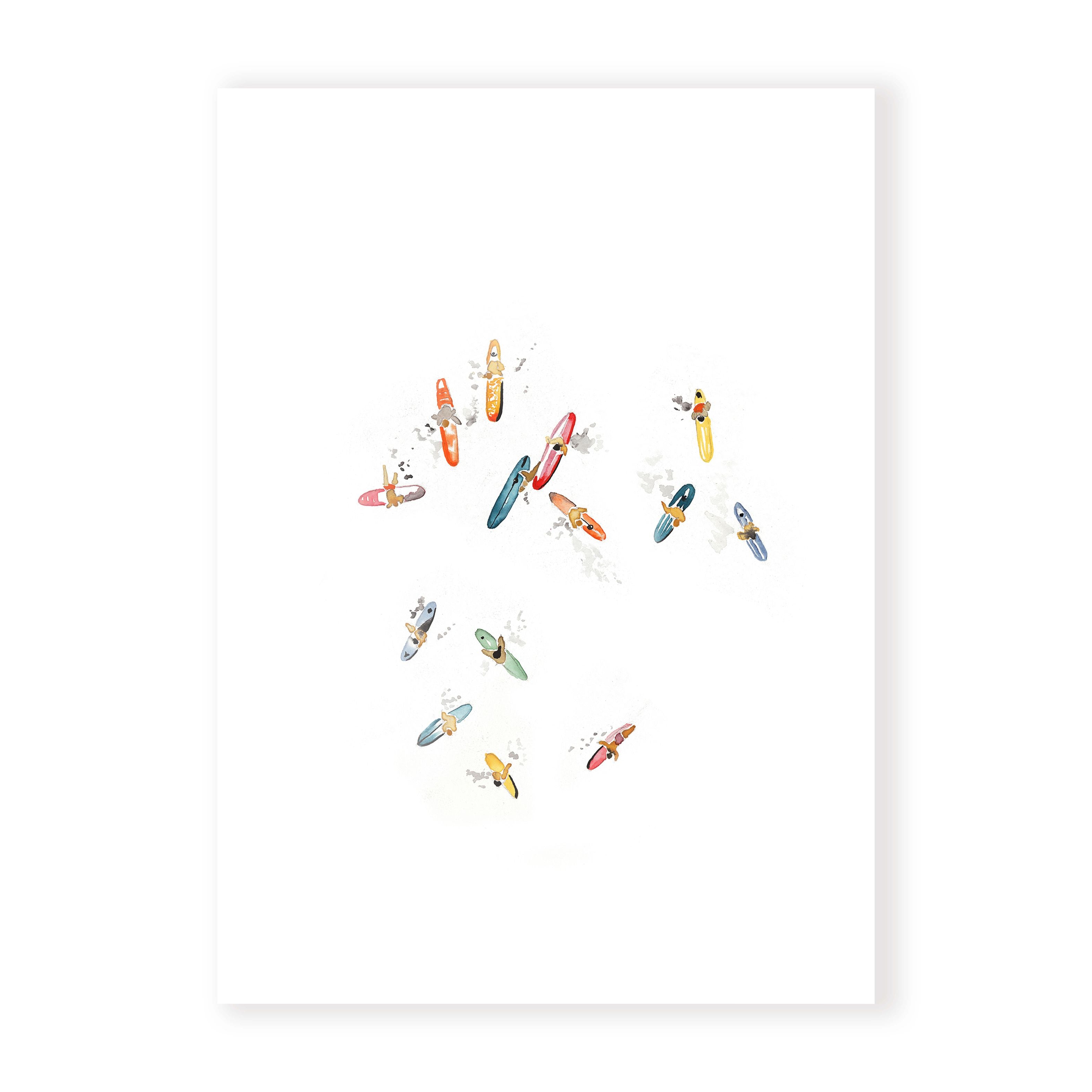 Our Surfers is a beach-themed piece, designed to capture some of our lovely summer scenes through watercolour