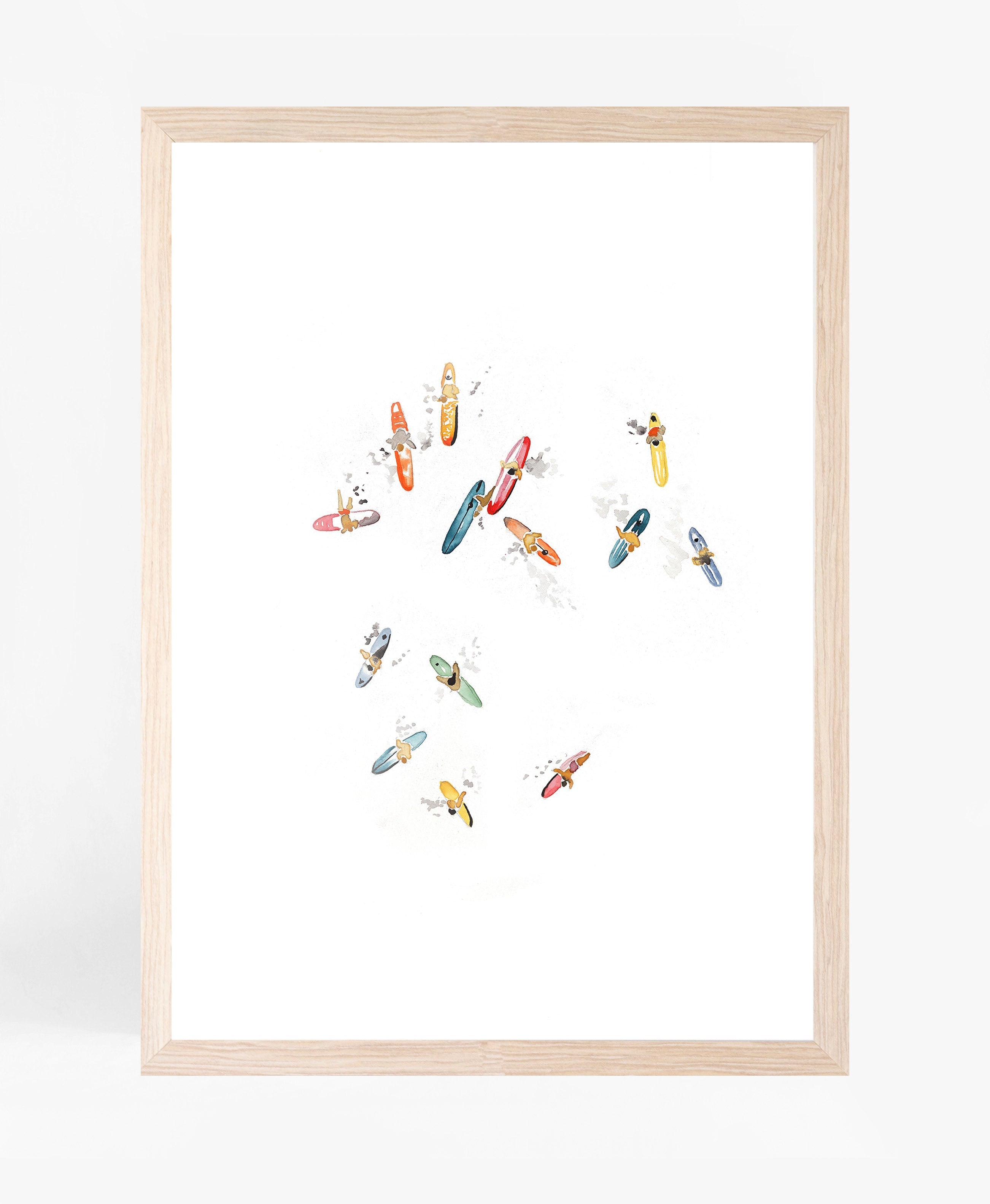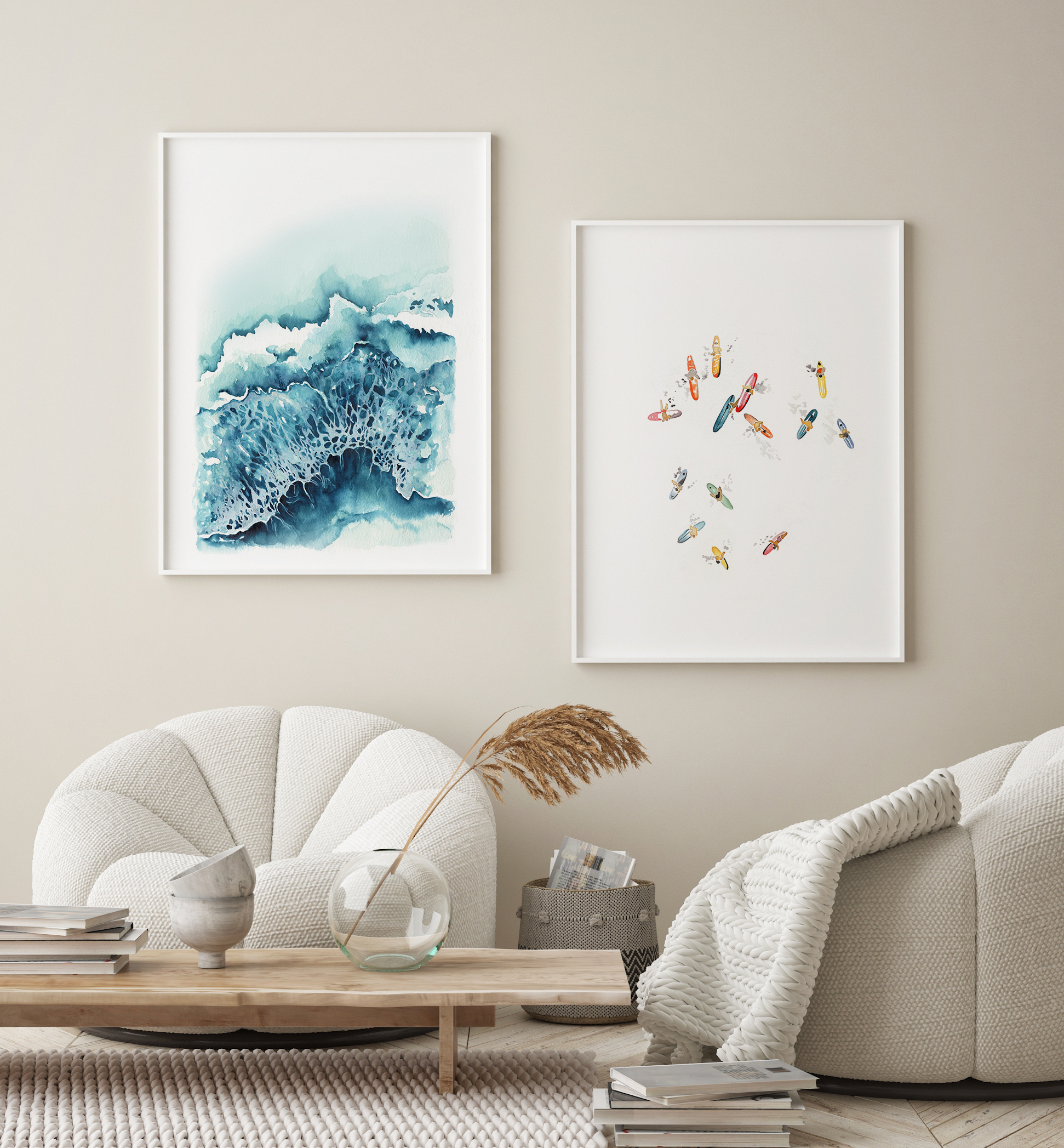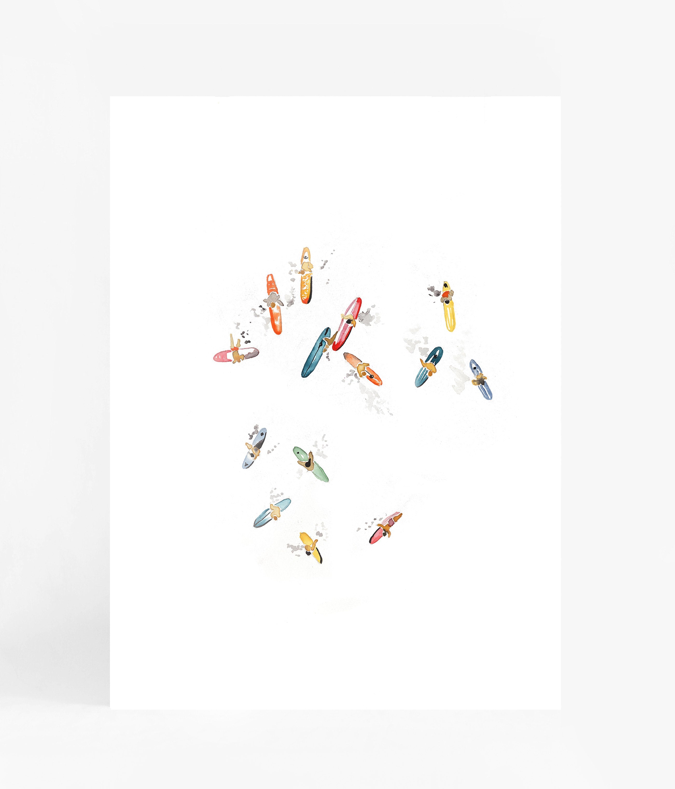 Our Surfers is a beach-themed piece, designed to capture some of our lovely summer scenes through watercolour