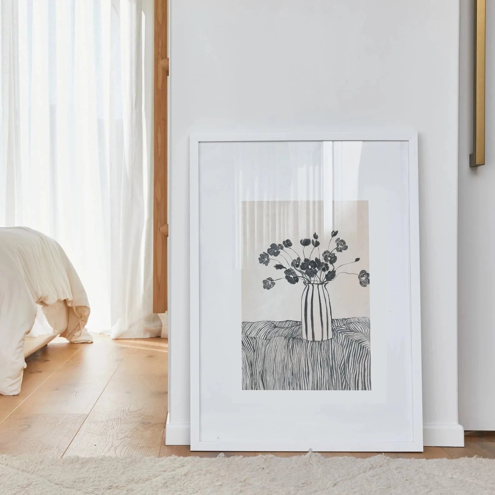 Our frames are locally made in Auckland and Melbourne from sustainably sourced wood and are available in three colours. We use a clear glass, and a shatter-proof acrylic for A0 and above.