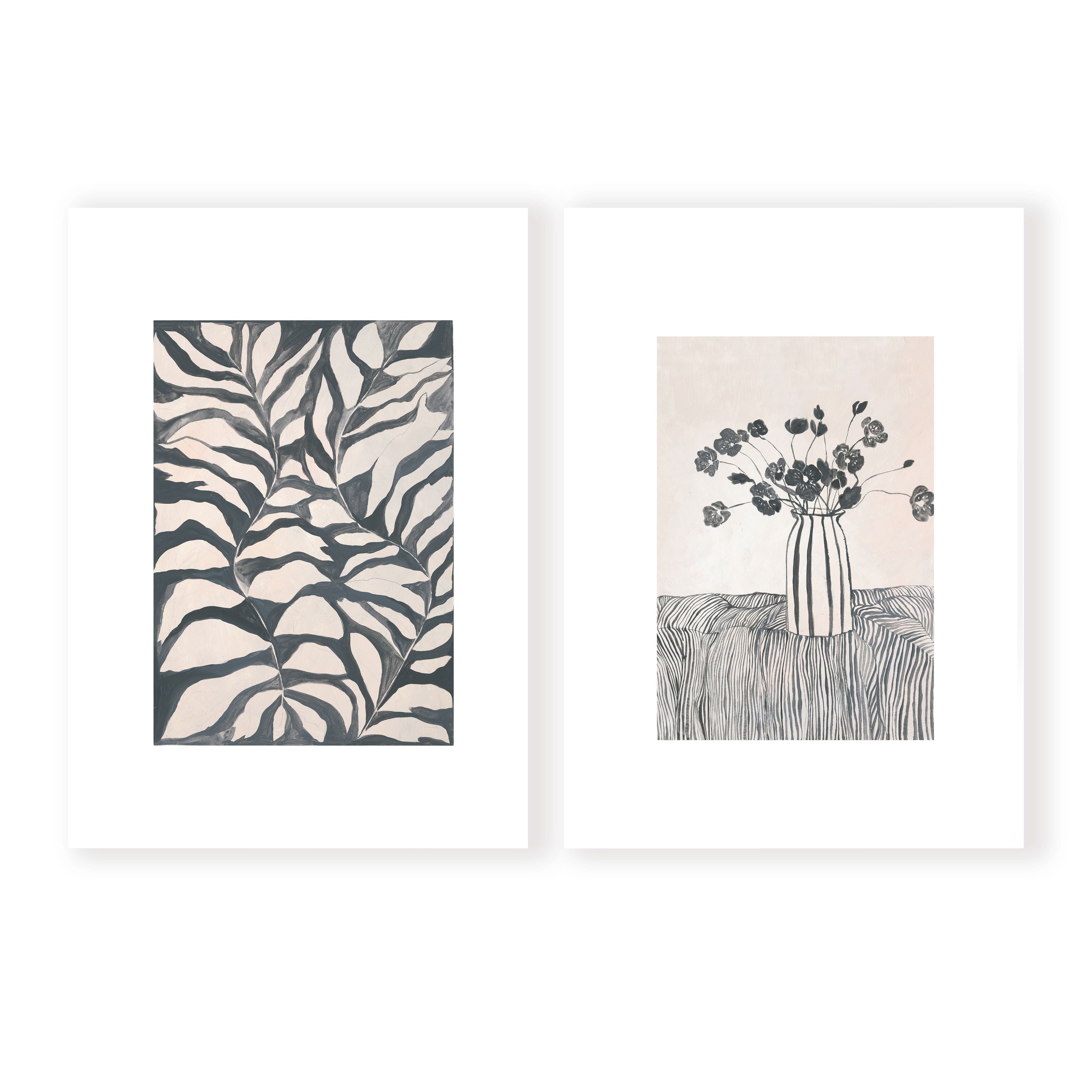 Vase Pair is designed with bold lines, and shapes, with a subtle blend of warmer tones. This Pair includes: Vase, Water Leaves Uniquely designed by Leden, this piece is crafted to create the perfect backdrop for a range of interiors.