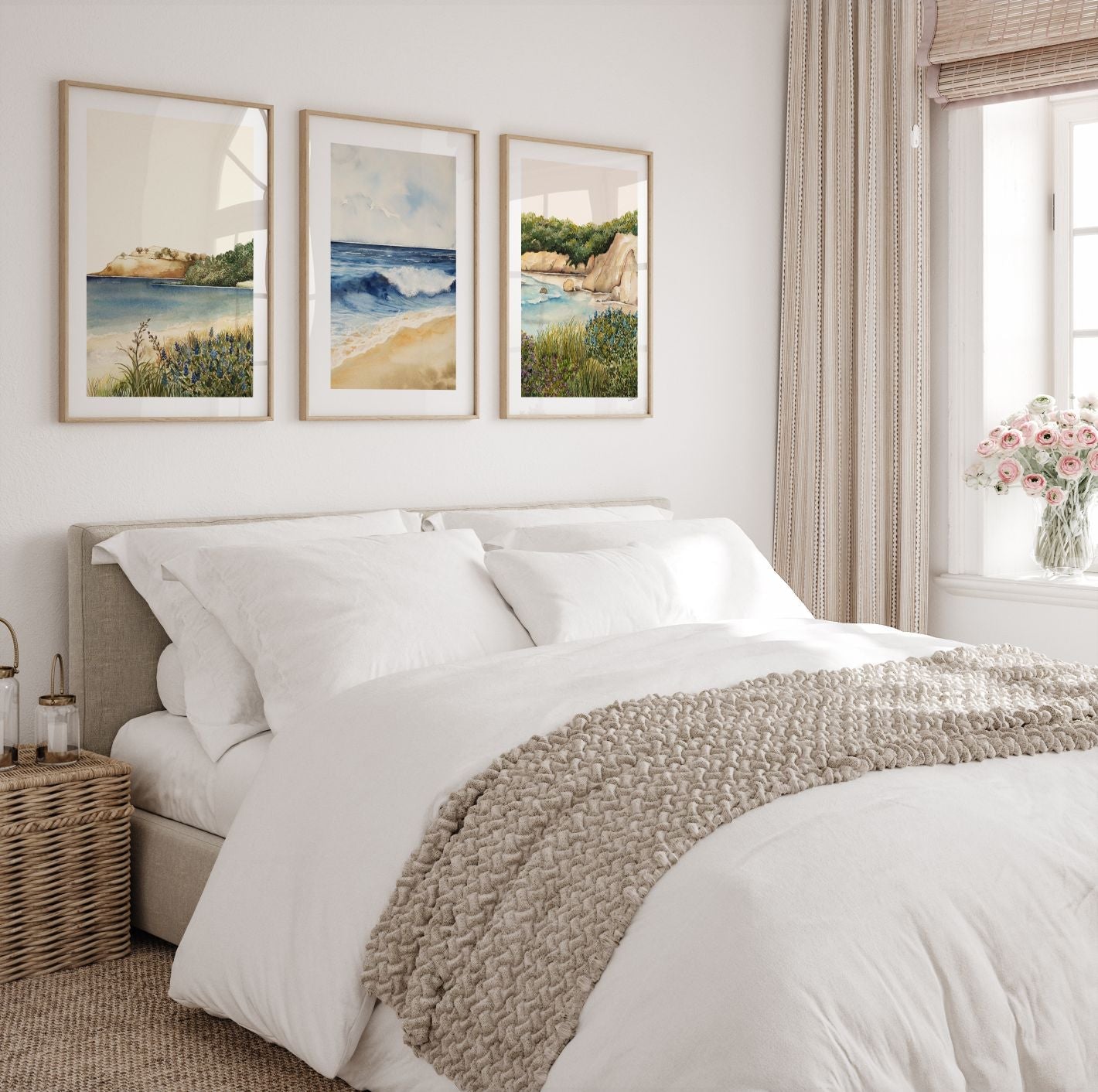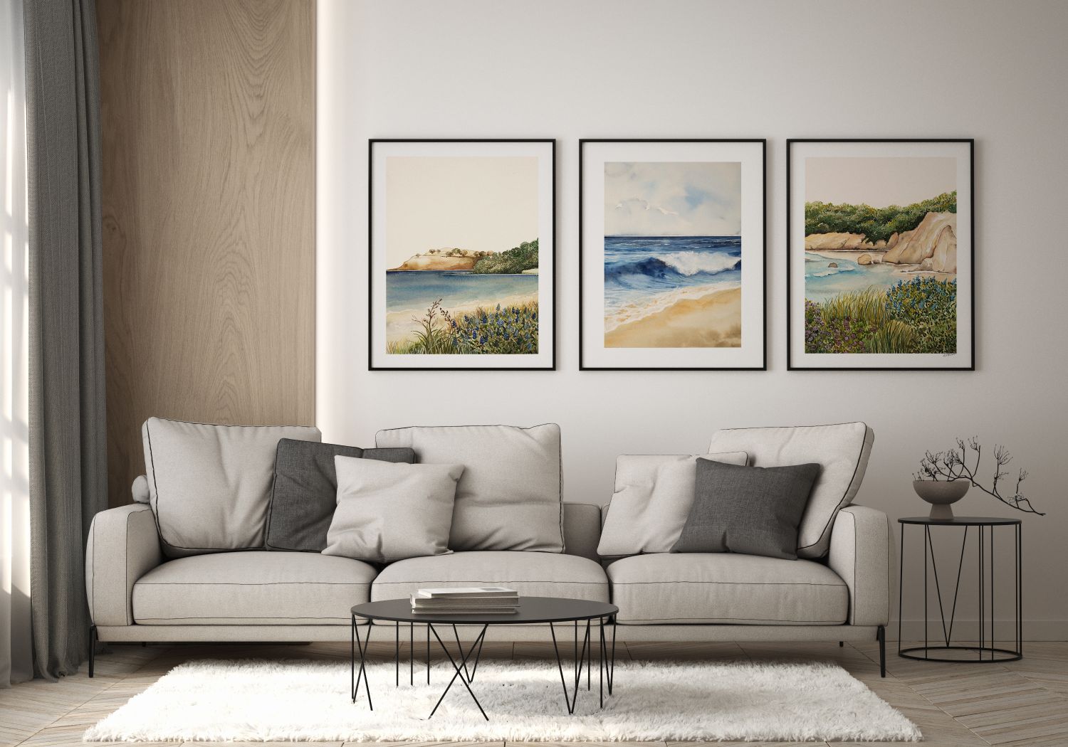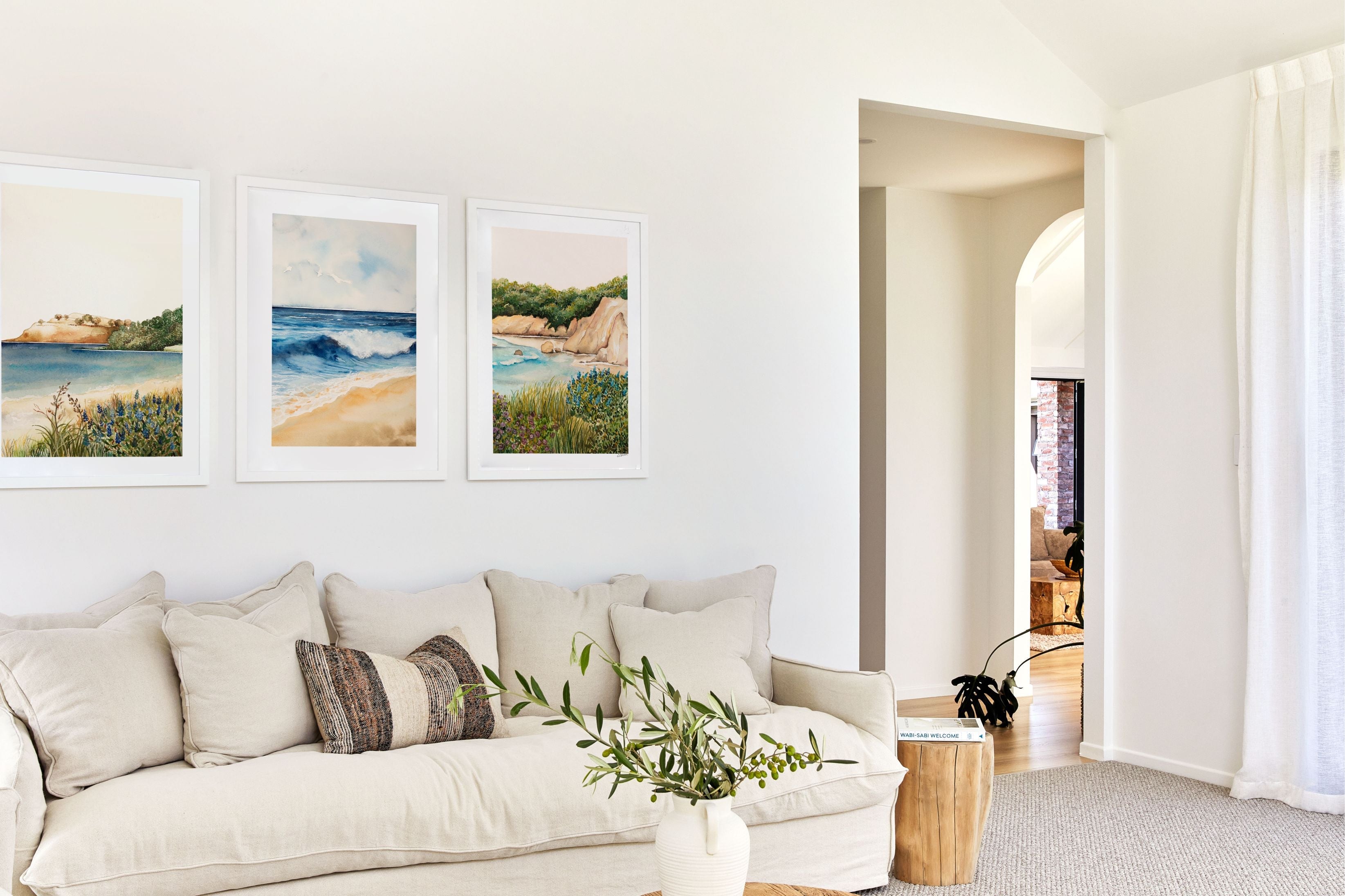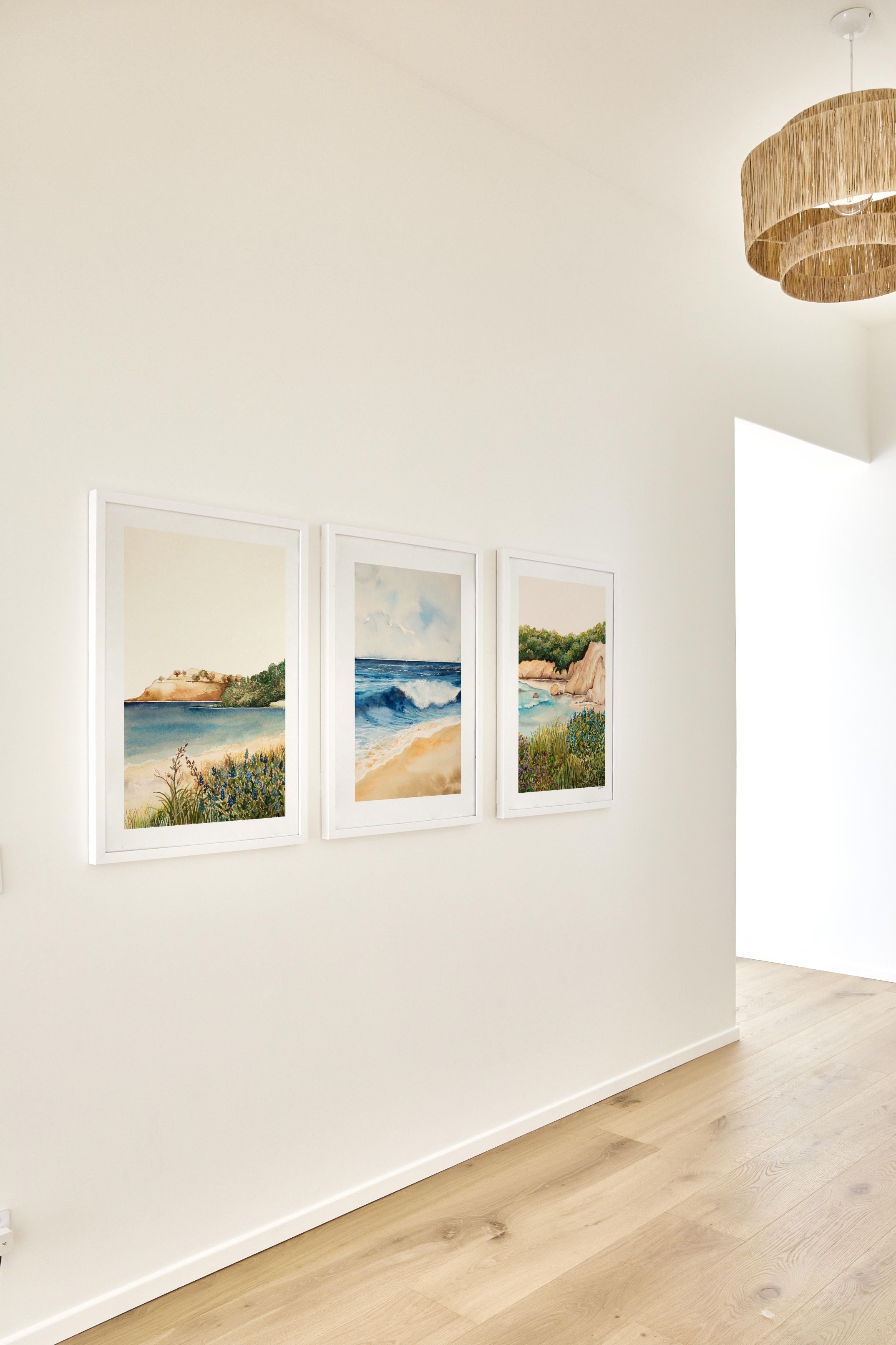 Golden Sandscapes, lapping waves and rocky shores, our Beach Grass Pair is a collection of our charming coastal-themed artworks. This Triplet includes: Colomandel I, Rolling Waves, Cathedral Cliffs II. Uniquely designed by Leden to bring the seaside to your interior.