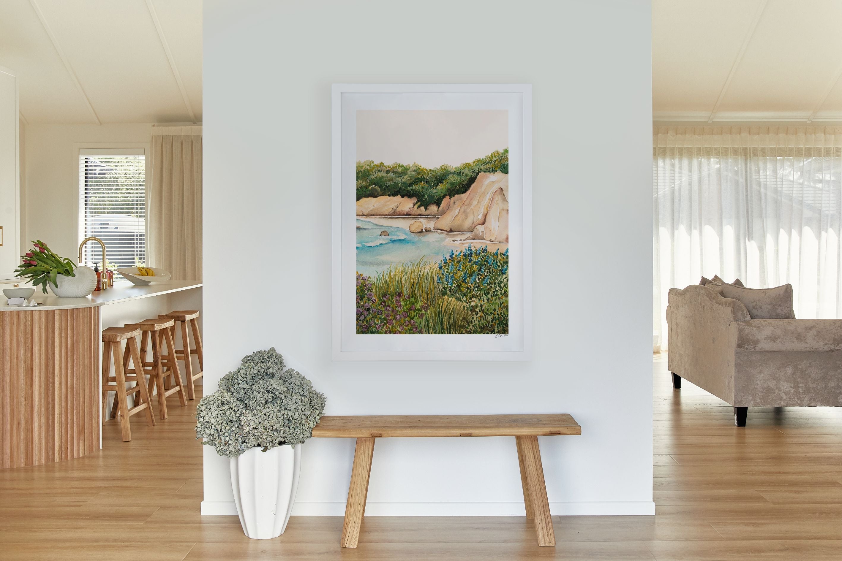 Our Cathedral cliffs II offers a warmer tone featuring some of our favourite beach-inspired landscapes.