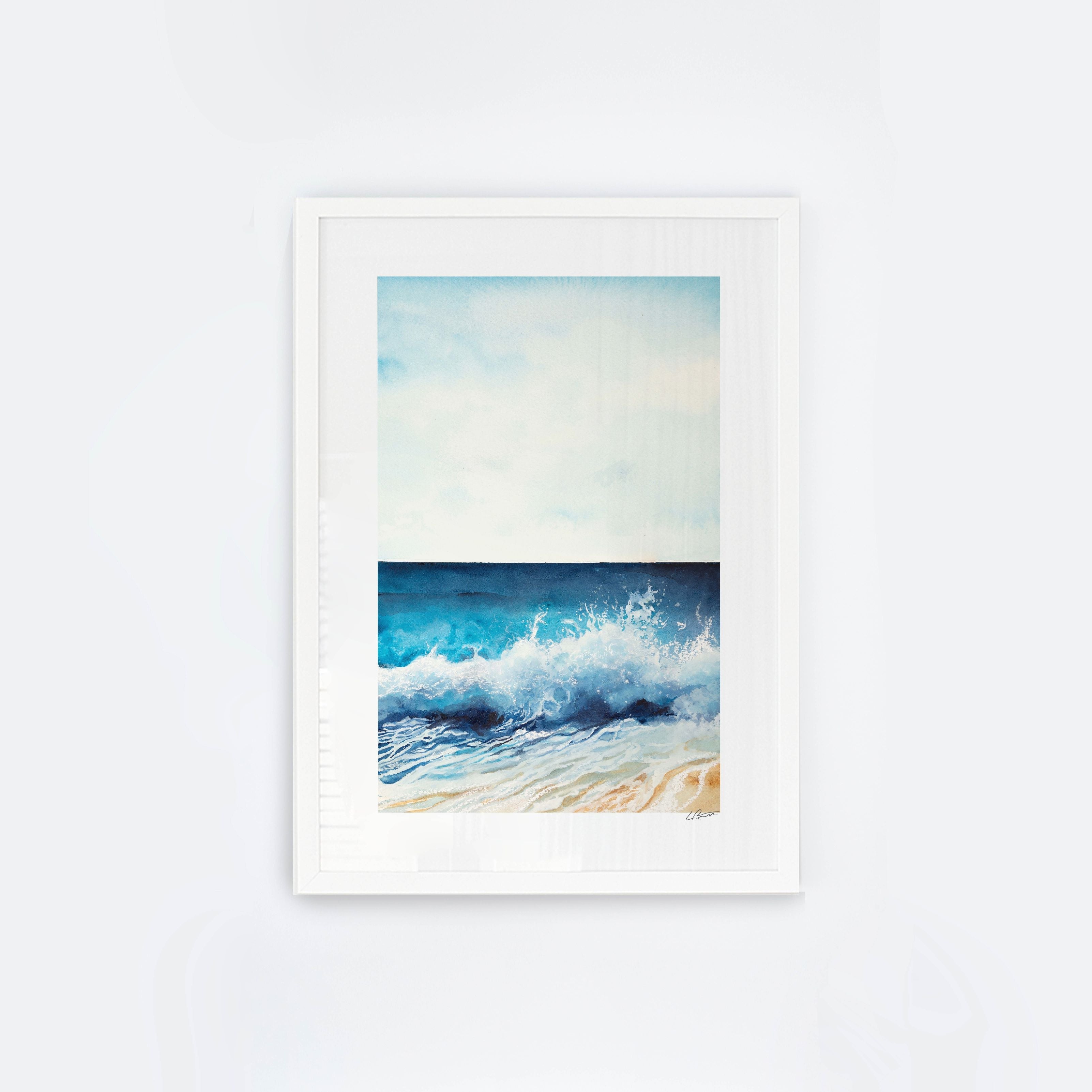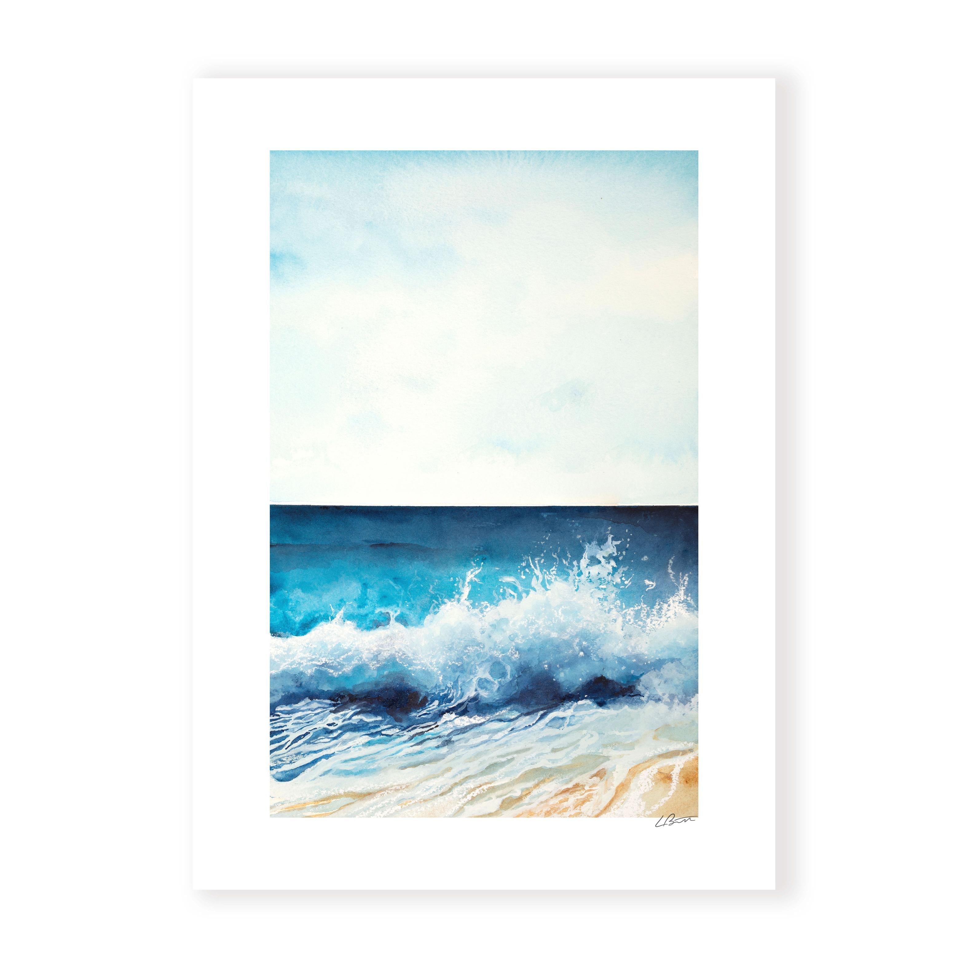 Our Crashing Waves captures the beauty of the crashing sea, a wash of calming blues and softer watercolour tones. Designed for a range of interiors.