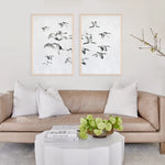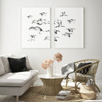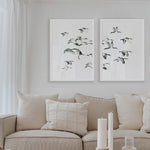 Golden Sandscapes, lapping waves and rocky shores, our Bird Flock Pair is a collection of our charming coastal-themed artworks. This pair includes: Bird Flock I, Bird Flock II Uniquely designed by Leden to bring the seaside to your interior.