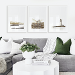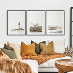 Our Bronze Triplet is an ode to some of our most incredible landscapes. Gentle palettes and soft defining shapes, captured through watercolour.. This triplet includes: Light House, Church On A Hill, Golden Mountain Uniquely designed by Leden, this piece is crafted to create the perfect backdrop for a range of interiors.
