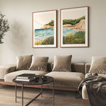Golden Sandscapes, lapping waves and rocky shores, our Beach Grass Pair is a collection of our charming coastal-themed artworks. This Pair includes: Cathedral Cliffs I, Cathedral Cliffs II. Uniquely designed by Leden to bring the seaside to your interior.