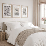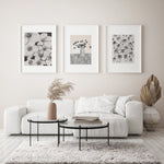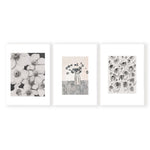 Our Daisy Triplet is a collection of monochromatic artworks, this versatile set is suitable for a range of interior spaces. This Triplet includes: poppy flowers, Vase, Daisy Field Uniquely designed by Leden., an ideal set to complete any interior space