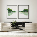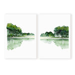 Our Reflections Pair is an ode to some of our most incredible landscapes. Gentle palettes and soft defining shapes, captured through watercolour. This pair includes: Forest Reflections I, Forest Reflections II Uniquely designed by Leden, this piece is crafted to create the perfect backdrop for a range of interiors.