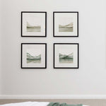 Green Serene Set is made up of a set of squares which include: Beige Mountain I, Beige Mountain II, Moke Lake Square I, Moke Lake Square II. Uniquely designed by Leden, this piece is crafted to create the perfect backdrop for a range of interiors.