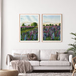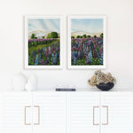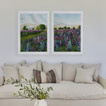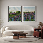 Our Lupin Fields Pair is one of our vibrant floral pieces, infused with pops of colour, to brighten up your walls. Lupin Fields Pair is a set of floral artworks which includes: Lupin Fields I, Lupin Fields II. Uniquely designed by Leden, this piece is crafted to complement our modern interiors.
