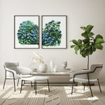 Radiant colours and shapes, the perfect piece to brighten up your home. Royal Hydrangea Pair is a set of floral artworks which includes: Royal Hydrangeas I, Royal Hydrangeas II Uniquely designed by Leden, this piece is crafted to complement our modern interiors.