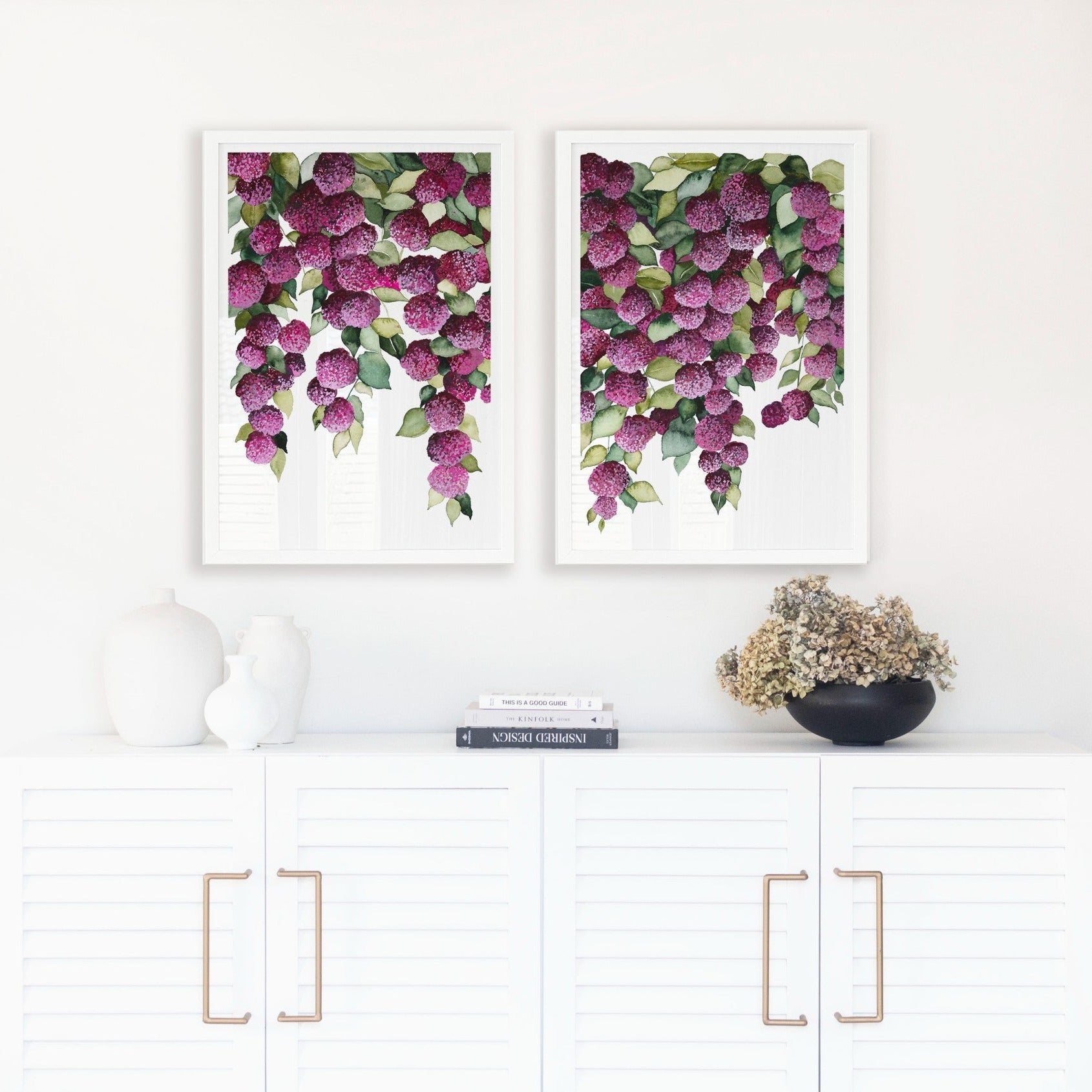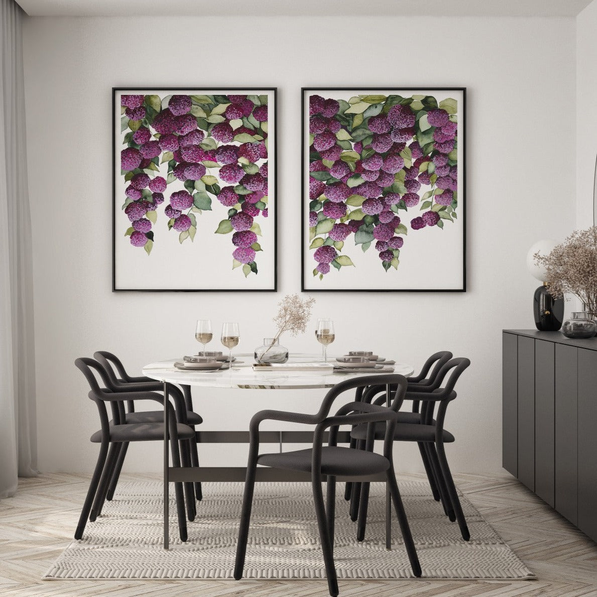 Our Falling Hydrangeas Pair is one of our vibrant floral pieces, infused with pops of colour, to brighten up your walls. Falling Hydrangeas Pair is a set of floral artworks which includes: Falling Hydrangeas I, Falling Hydrangeas II. Uniquely designed by Leden, this piece is crafted to complement our modern interiors.