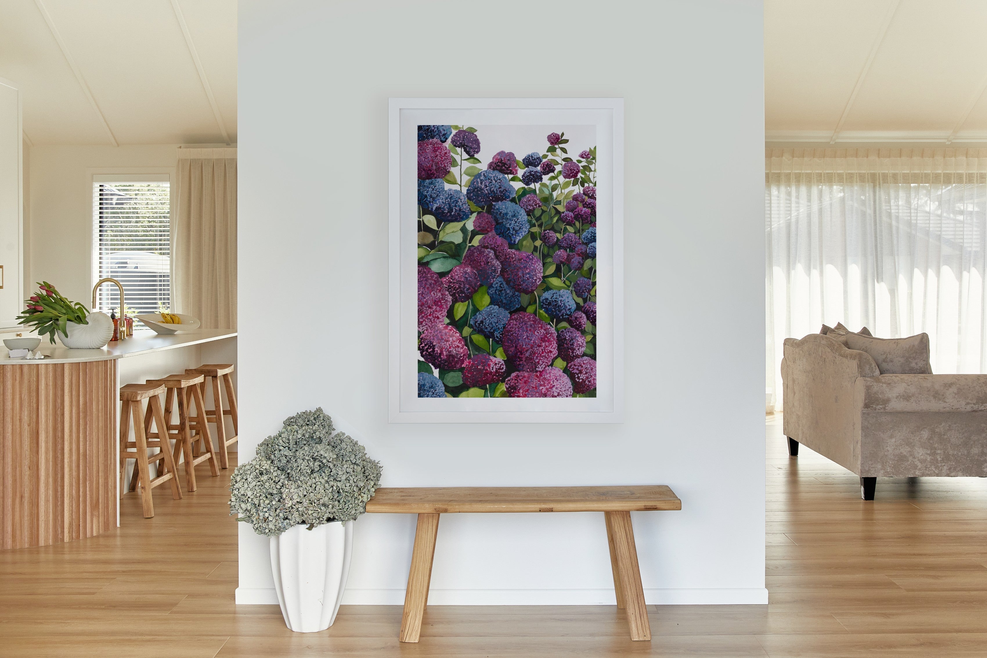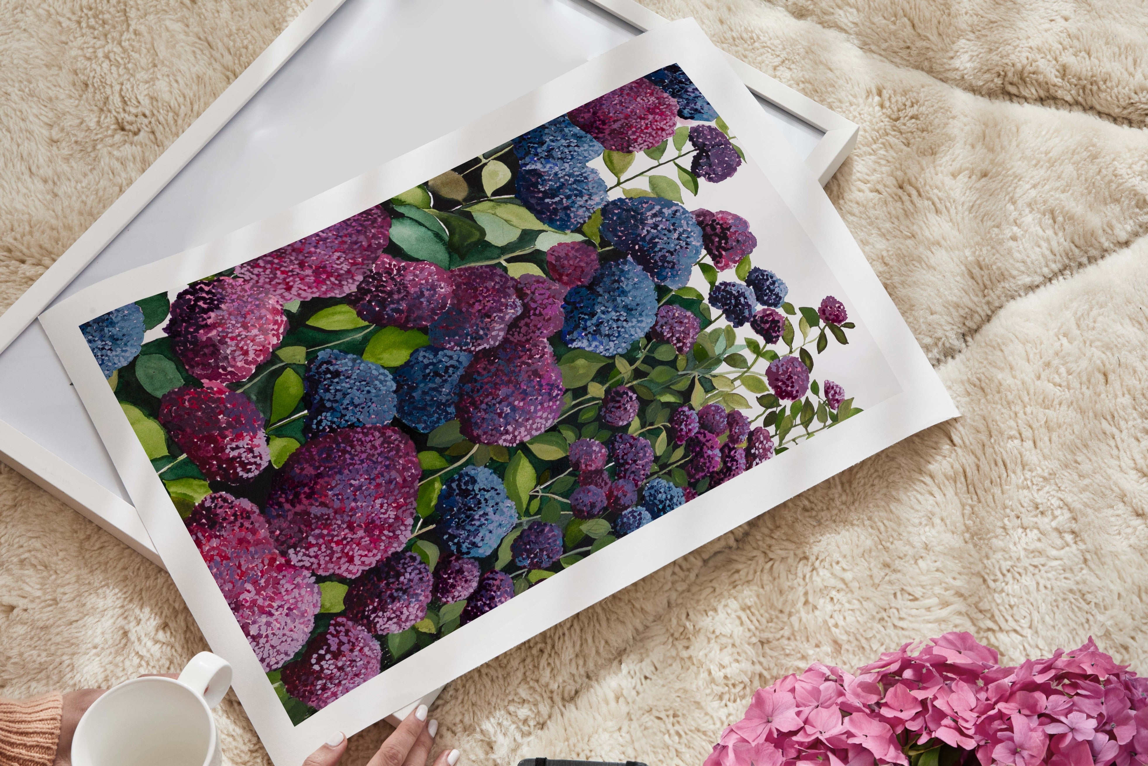 Our Lilac Hydrangea III is one of our vibrant floral pieces, infused with pops of colour, to brighten up your walls