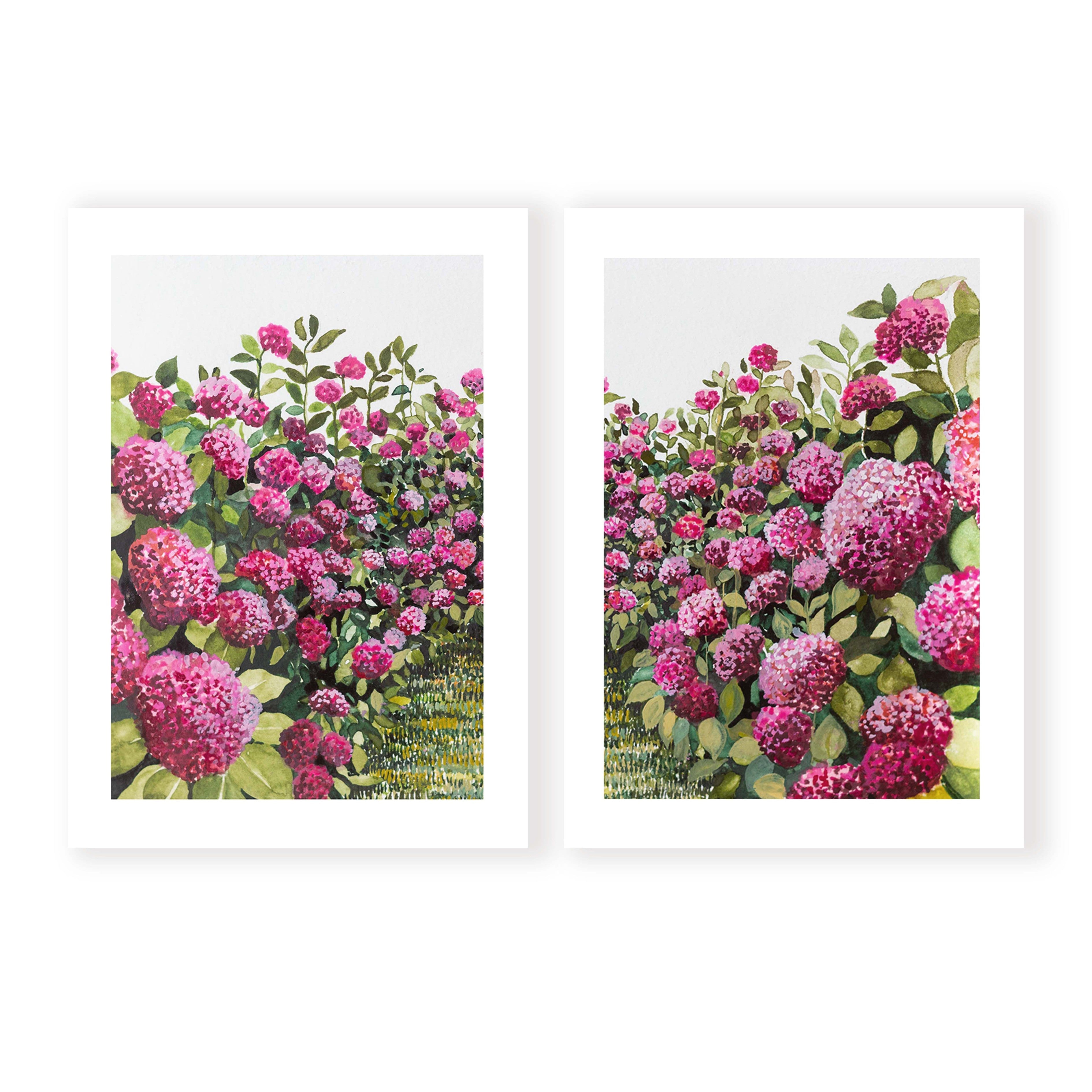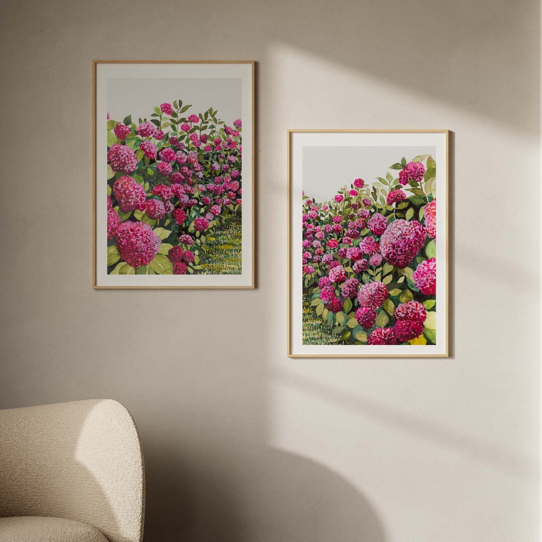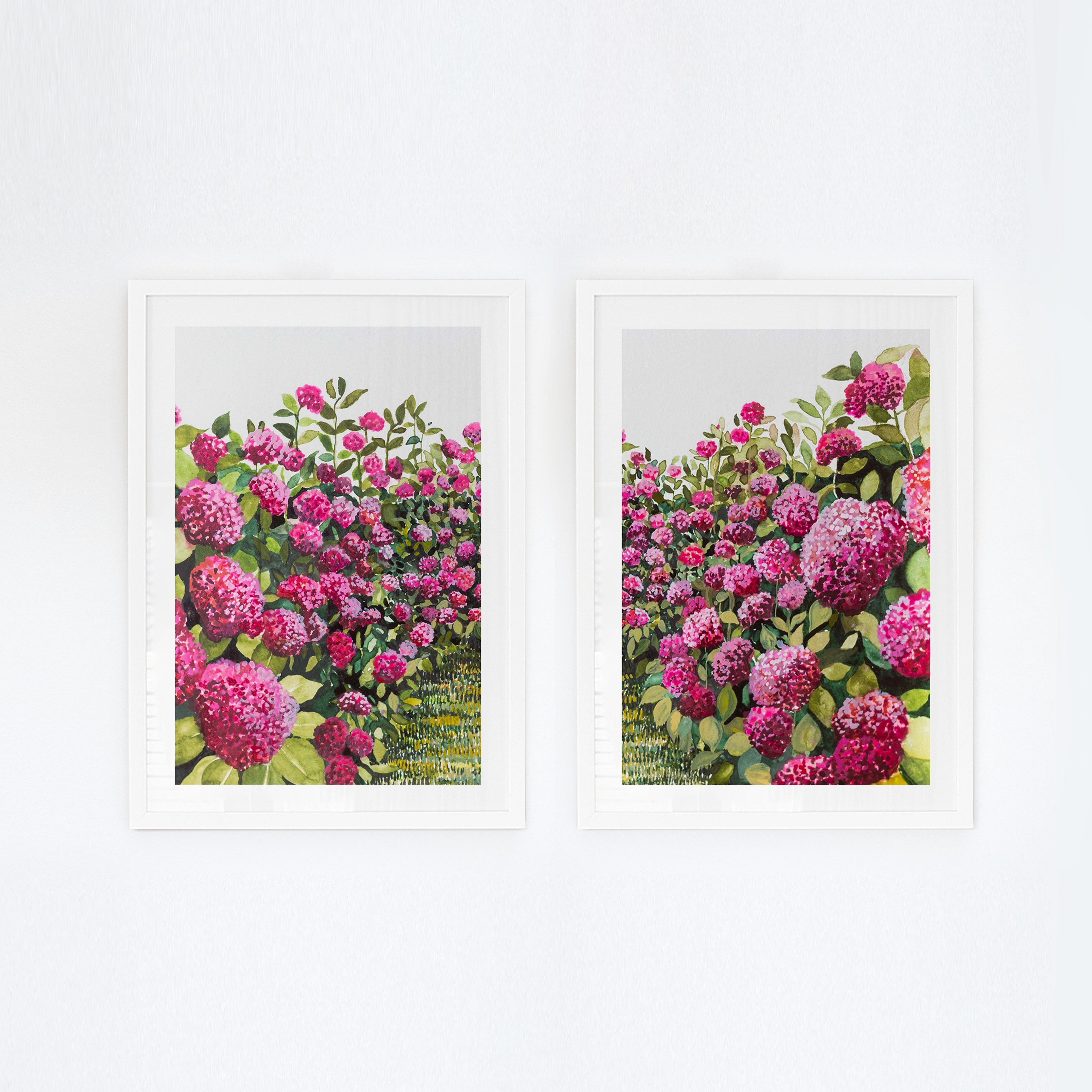 Our Pink Hydrangeas Pair is one of our vibrant floral pieces, infused with pops of colour, to brighten up your walls. Pink Hydrangeas Pair is a set of floral artworks which includes: Pink Hydrangeas I, Pink Hydrangeas II.