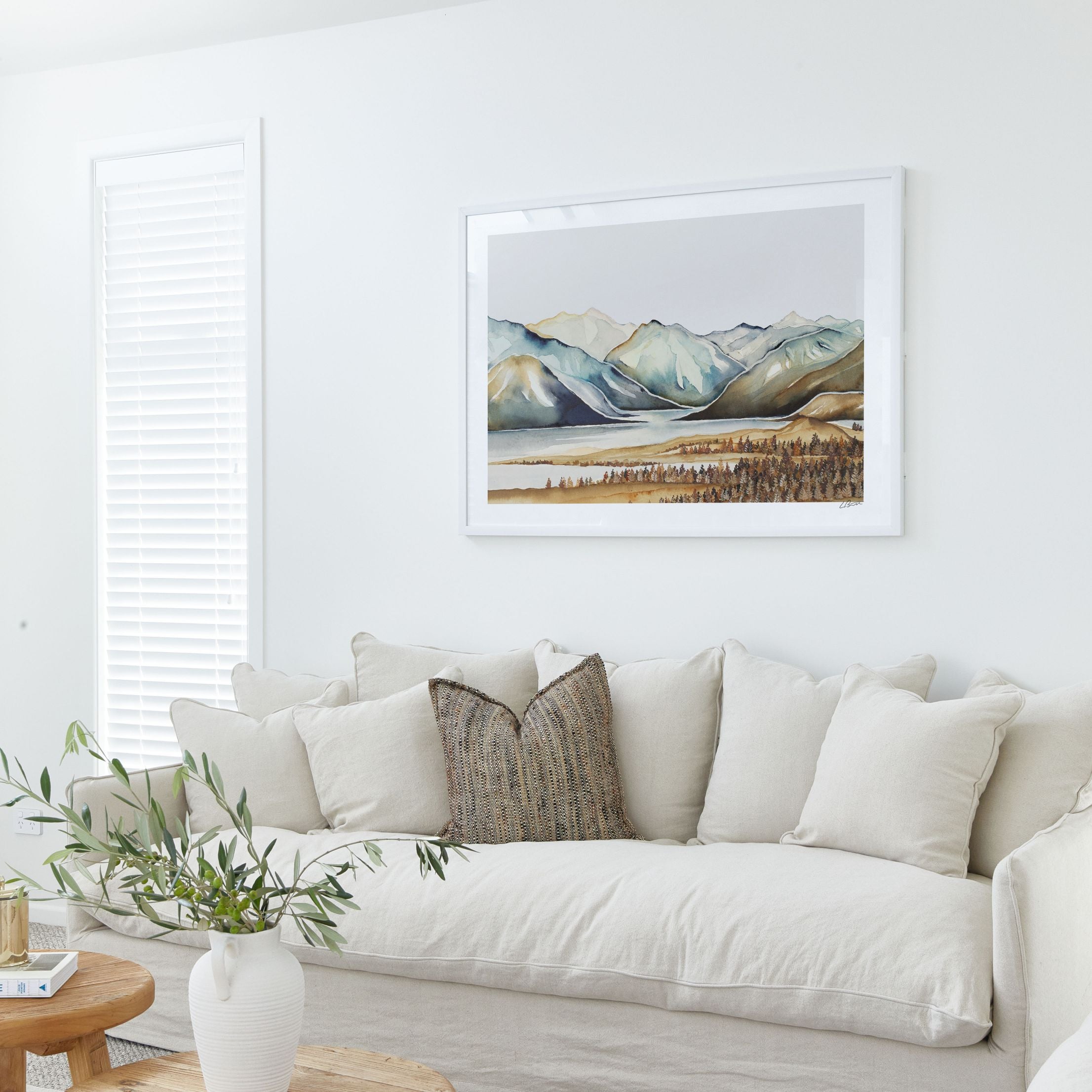 Our Mount Potts Landscape is an ode to some of our most incredible mountains and landscapes. Gentle palettes and soft defining shapes, captured through watercolour.
