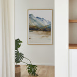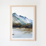 Our Pukaki Lake III is an ode to some of our most incredible mountains and landscapes. Gentle palettes and soft defining shapes, captured through watercolour.