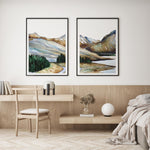 Our Pukaki Lake Pair is an ode to some of our most incredible mountains and landscapes. Gentle palettes and soft defining shapes, captured through watercolour.. This pair includes: Pukaki Lake I, Pukaki Lake II Uniquely designed by Leden, this piece is crafted to create the perfect backdrop for a range of interiors.