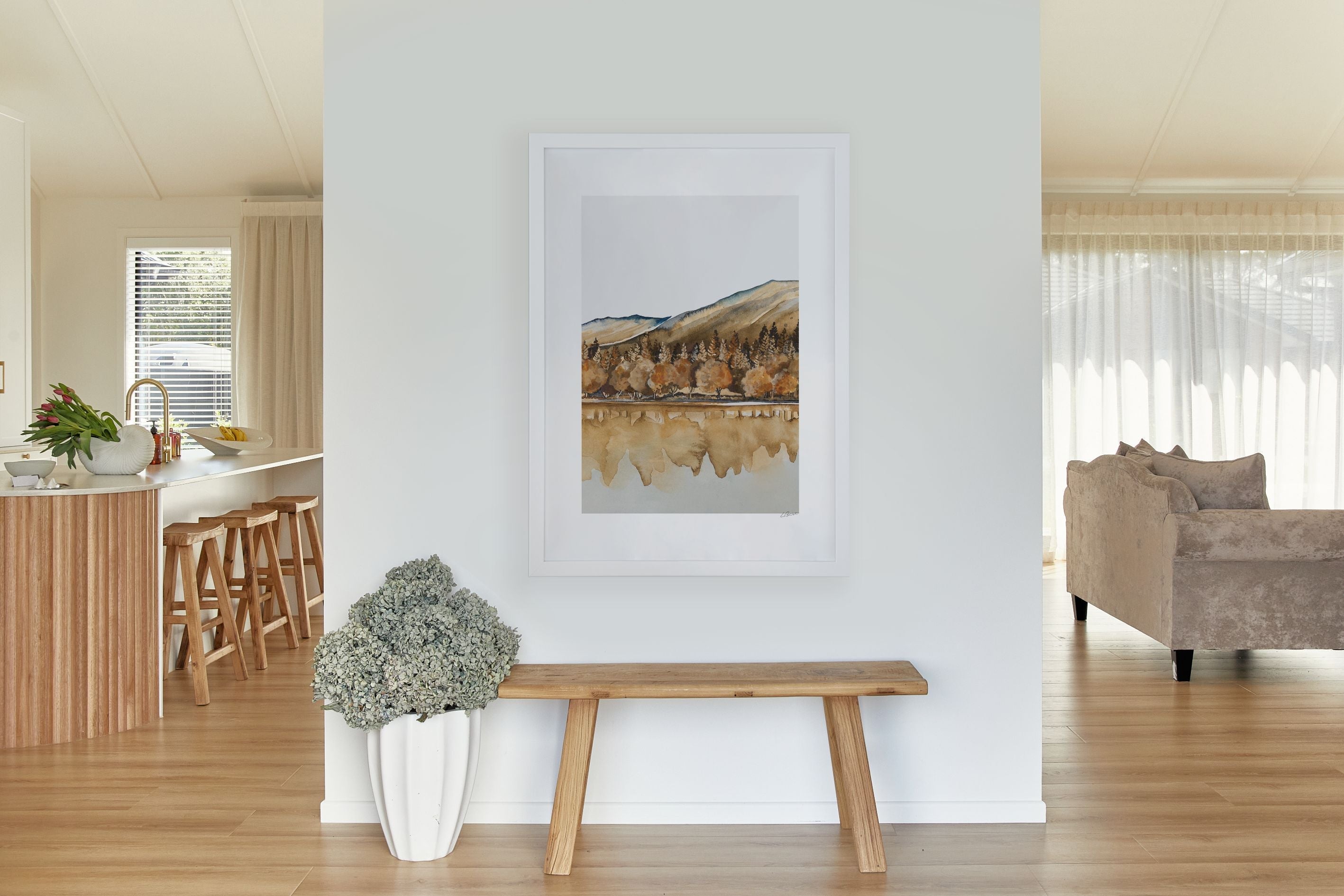 Our Ashburton Lake III is an ode to some of our most incredible mountains and landscapes. Gentle palettes and soft defining shapes, captured through watercolour.
