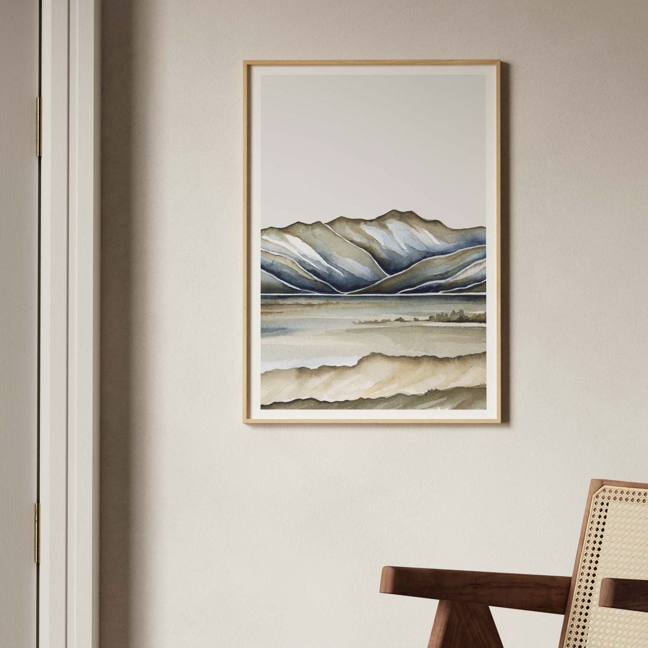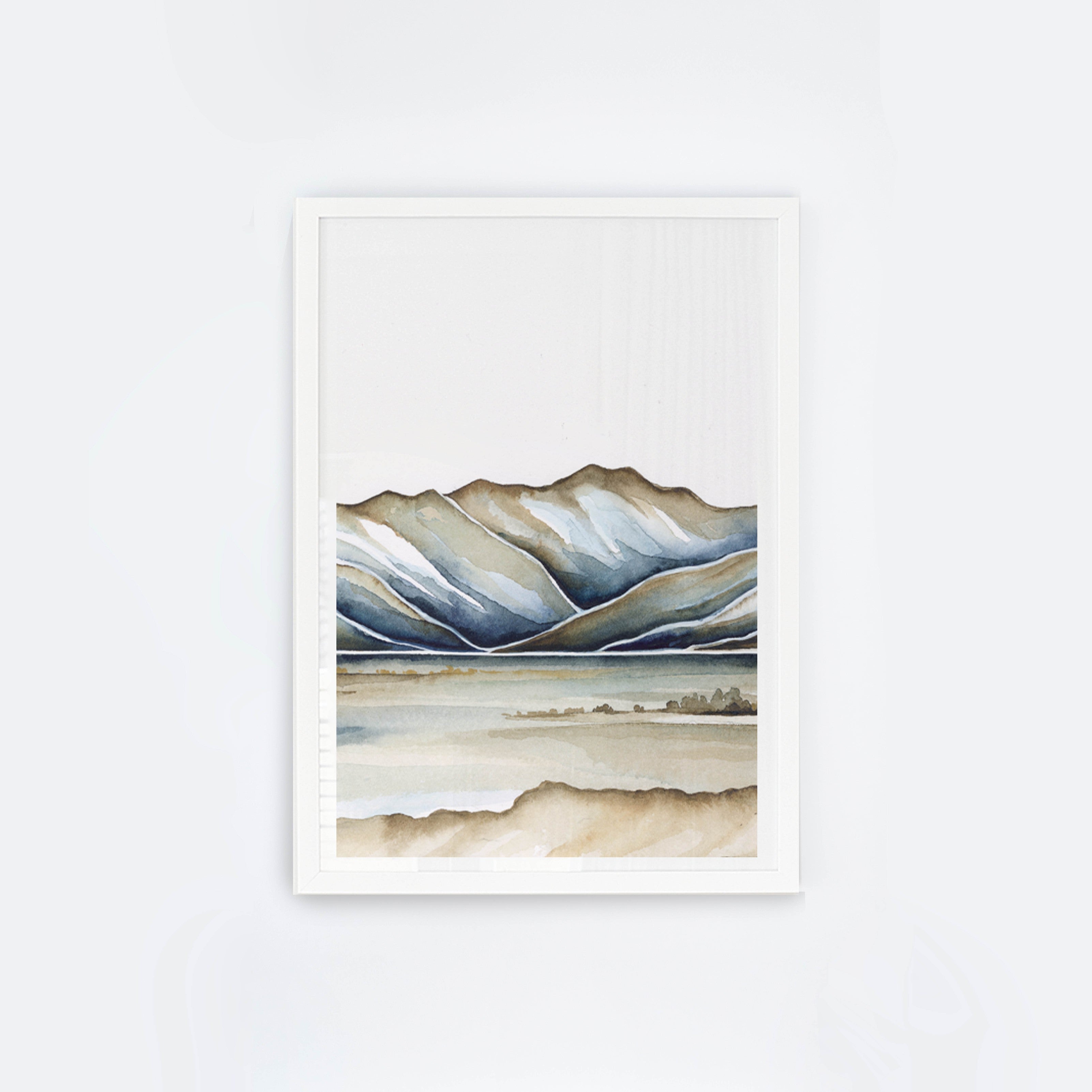 Discover the tranquillity of an off-the-beaten-path landscape, where the serenity of nature meets the clear, glacial embrace of a pristine lake. This breathtaking view melds shades of blues, whites, and browns, creating a soothing ambiance that will infuse your space with a sense of calm.