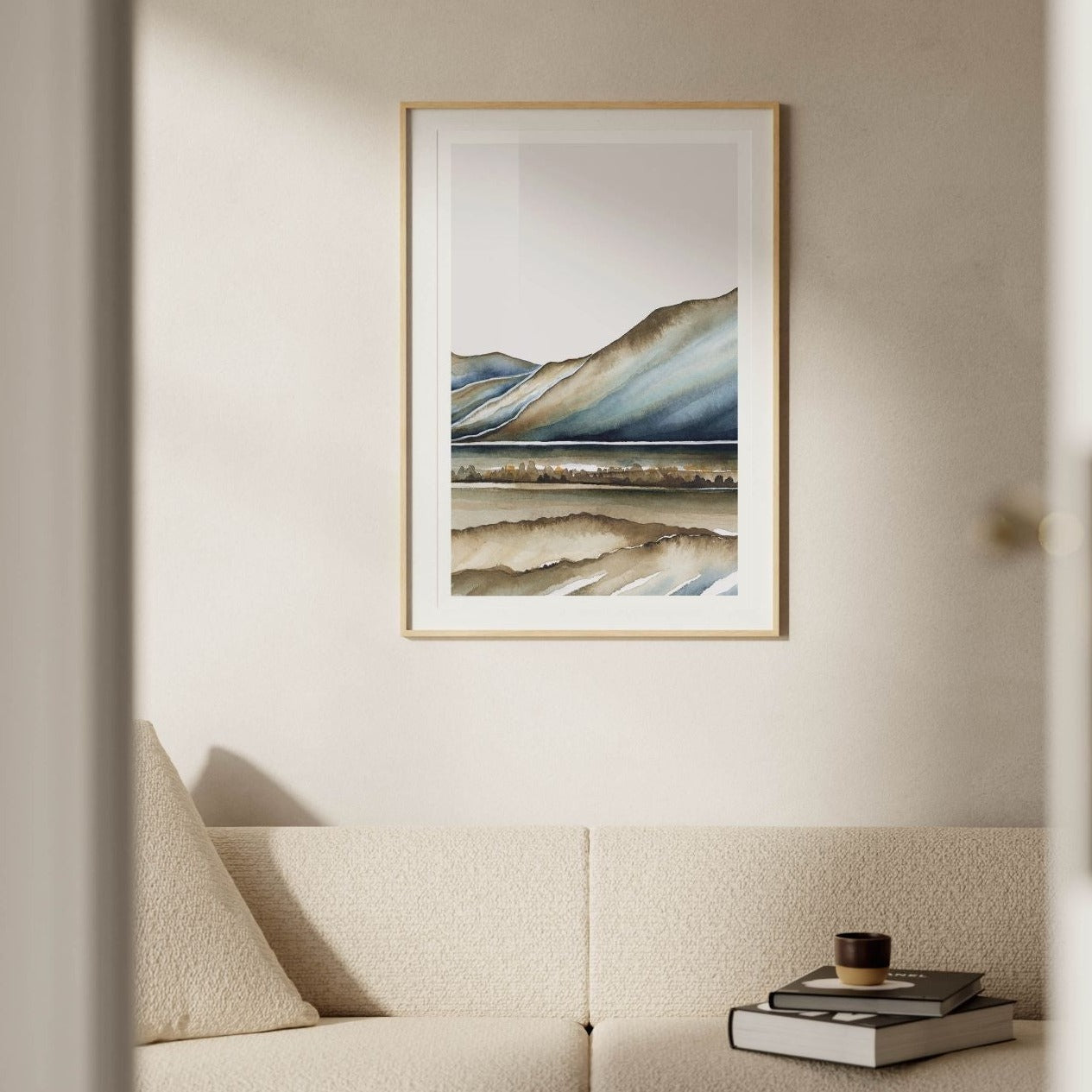 Discover the tranquillity of an off-the-beaten-path landscape, where the serenity of nature meets the clear, glacial embrace of a pristine lake. This breathtaking view melds shades of blues, whites, and browns, creating a soothing ambiance that will infuse your space with a sense of calm.