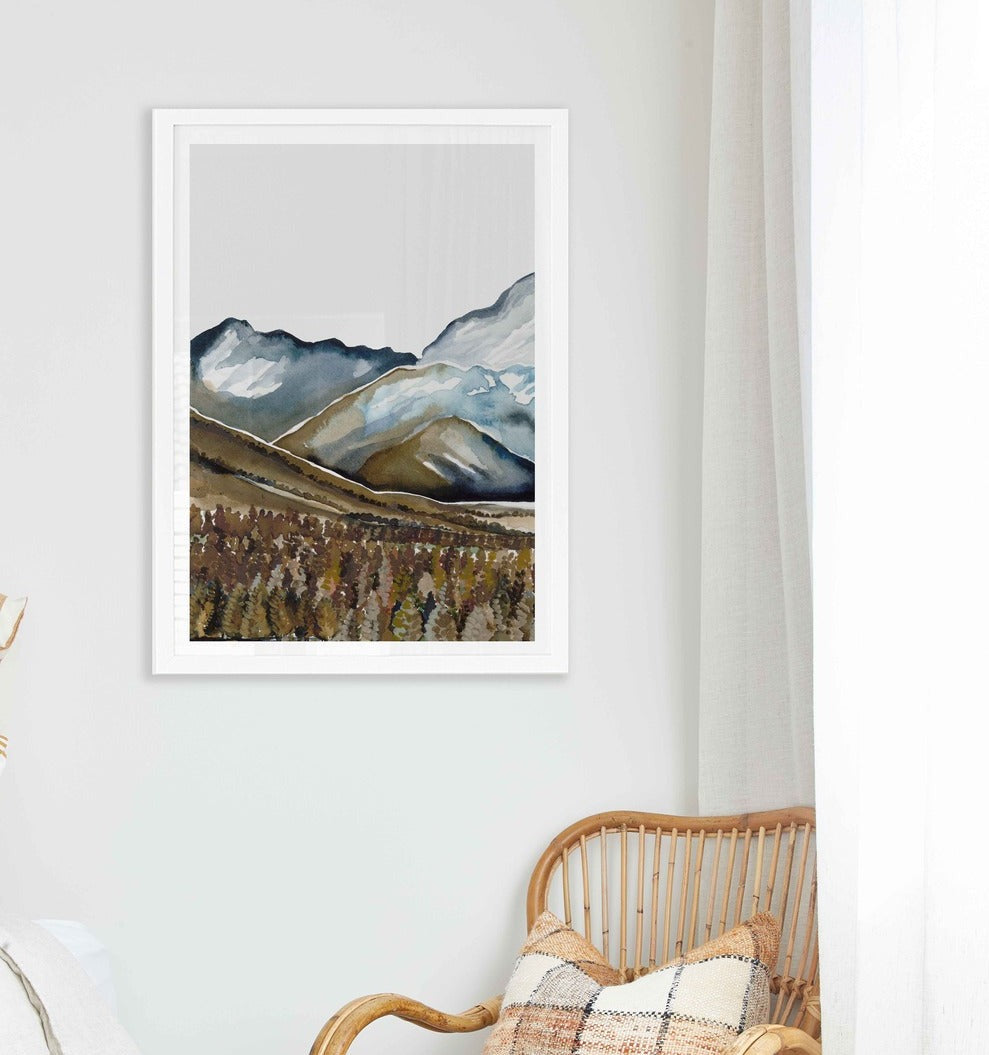 Our Aoraki I is an ode to some of our most incredible mountains and landscapes. Gentle palettes and soft defining shapes, captured through watercolour.