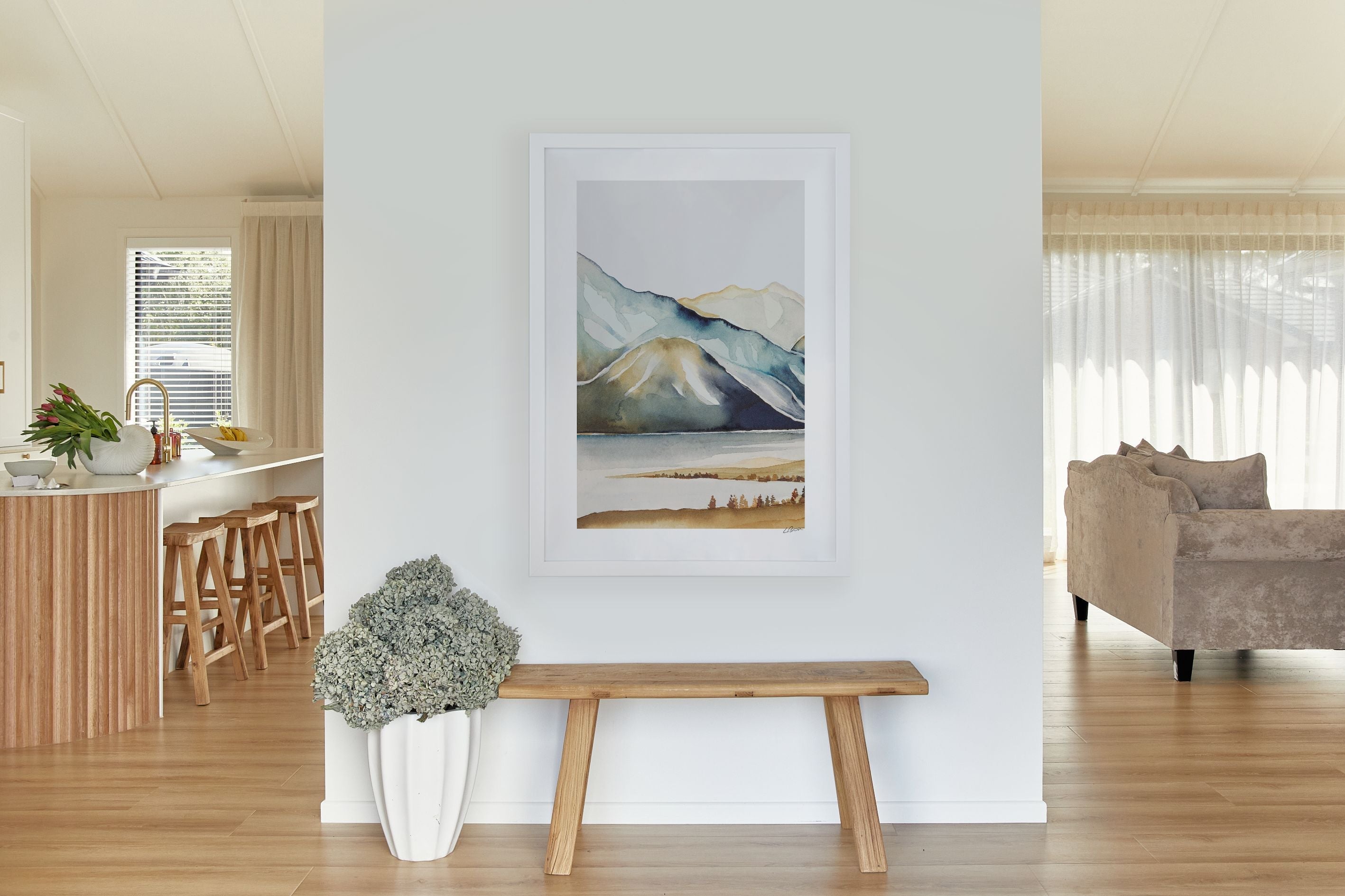 Our Mount Potts I is an ode to some of our most incredible mountains and landscapes. Gentle palettes and soft defining shapes, captured through watercolour.