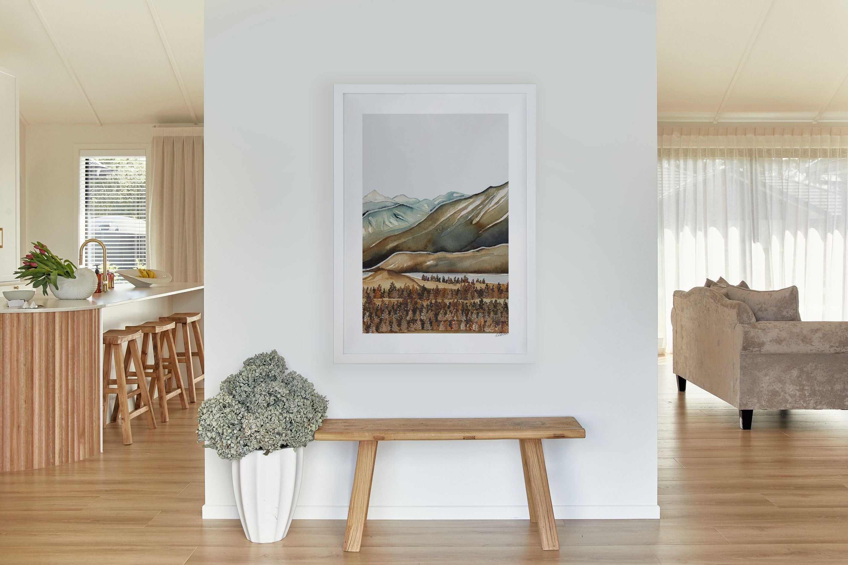 Our Mount Potts III is an ode to some of our most incredible mountains and landscapes. Gentle palettes and soft defining shapes, captured through watercolour.