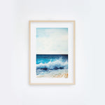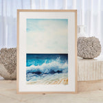 Our Crashing Waves captures the beauty of the crashing sea, a wash of calming blues and softer watercolour tones. Designed for a range of interiors.