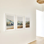 Our Mount Potts Triplet is an ode to some of our most incredible mountains and landscapes. Gentle palettes and soft defining shapes, captured through watercolour. This triplet includes: Mount Potts I, Mount Potts II, Mount Potts III. Uniquely designed by Leden, this piece is crafted to create the perfect backdrop for a range of interiors.