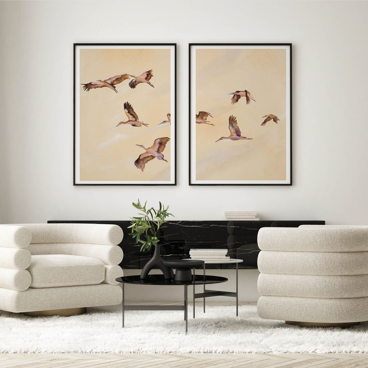 Birdscape Pair is a set of artworks that includes: Birdscape I, Birdscape II. Uniquely designed by Leden.